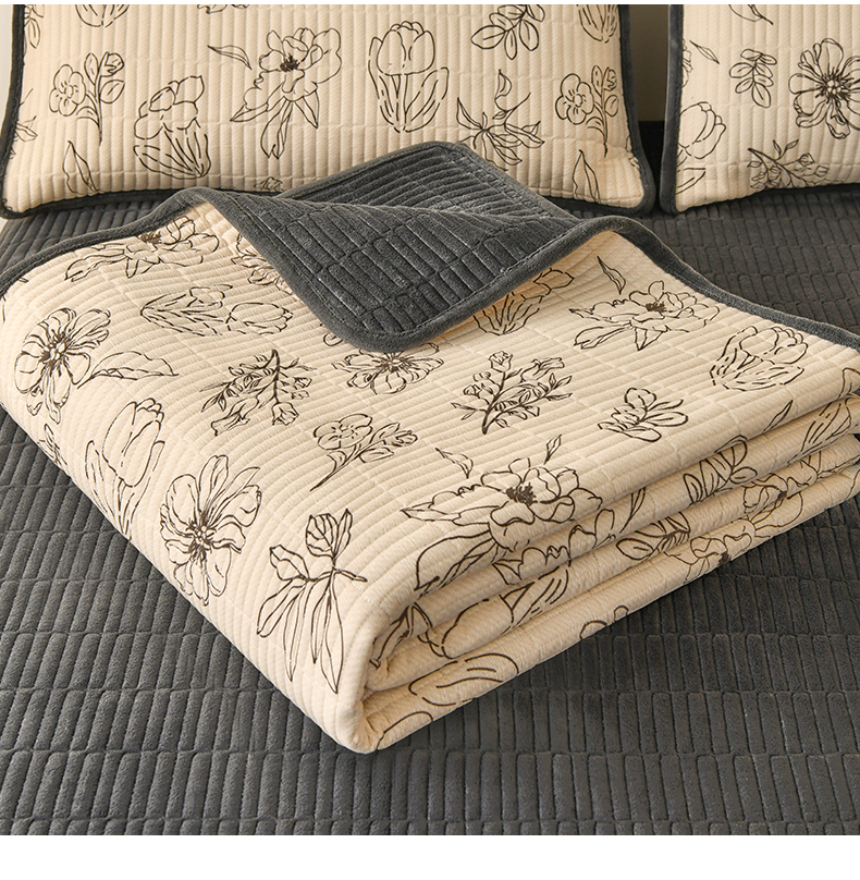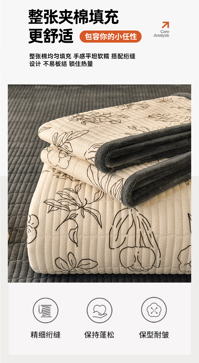 悠米悠家 2026新款卡通棉拼绒夹棉床盖单品床盖床盖单件 墨色花卉