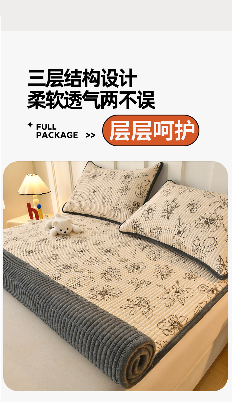 (总)悠米悠家 2025新款A类羊羔绒夹棉大豆床笠床垫,白色,粉色,灰色,橘色,咖色