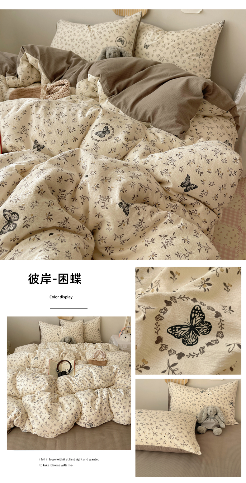 当前位置: 91家纺网 > 商品网购 > 床品套件 > 四件套 > 双层纱四件套 > 沐芷 2026 【提供买家秀】简约可爱双层纱四件套床上用品 单被套/四件套 彼岸-困蝶