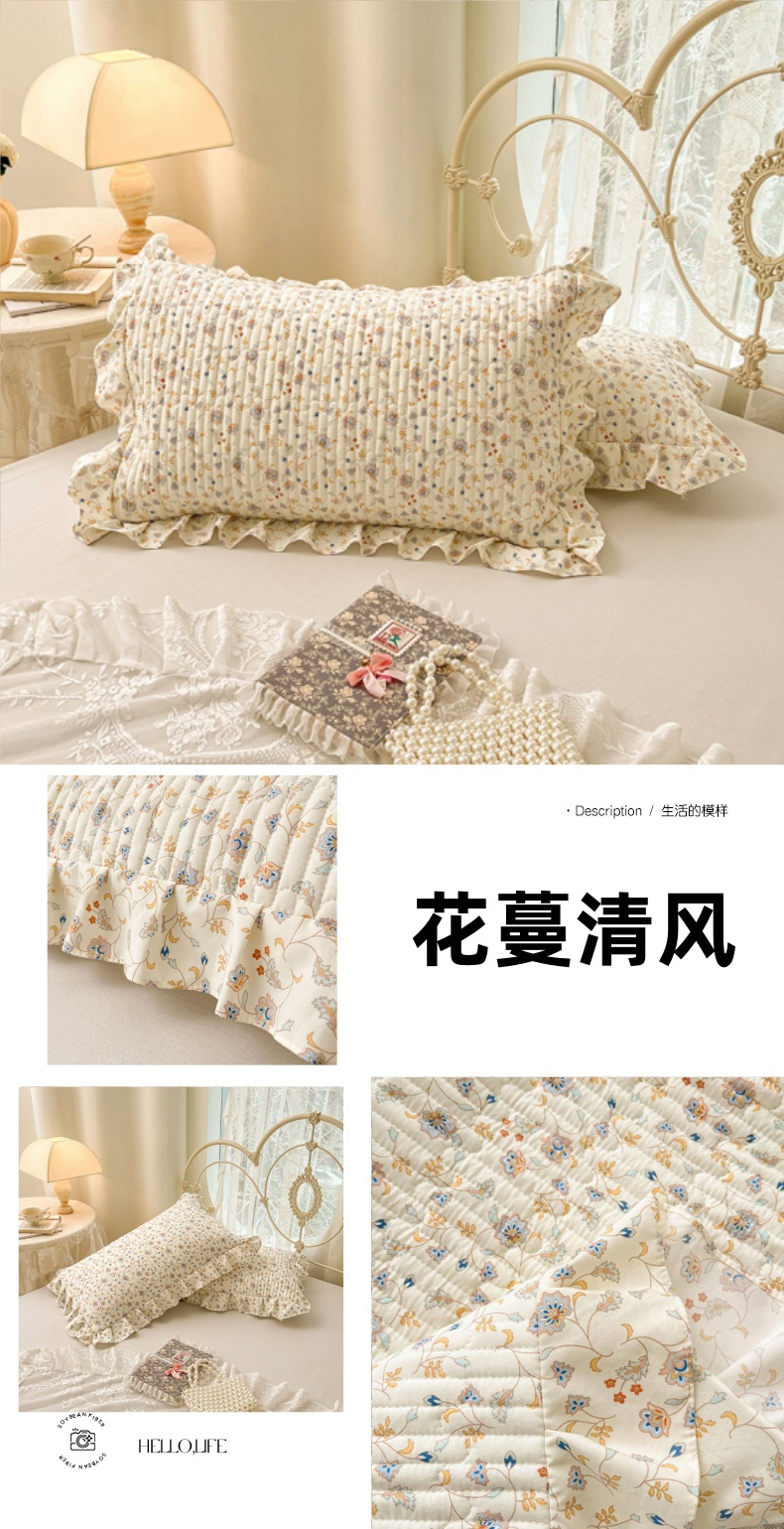 • 91家纺网 家纺一手货源 找家纺 圣比熊 2026新款A类云朵棉夹棉花边枕套宿舍单人一只装枕芯内胆套-单人枕套 海棠花开(花边夹棉)