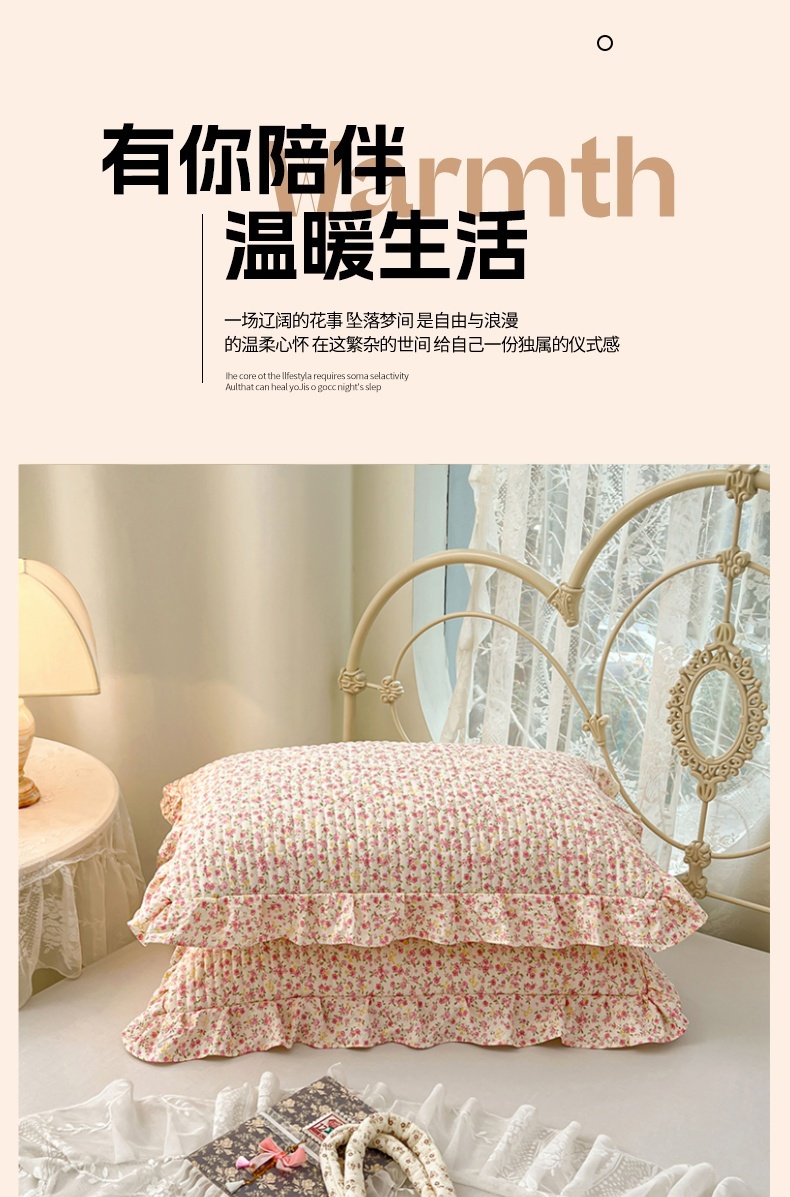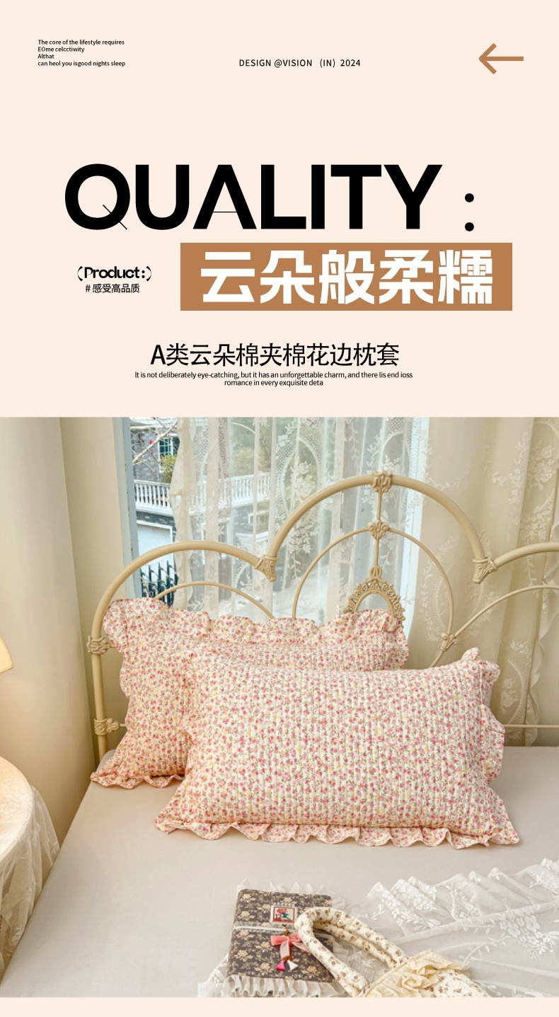 • 91家纺网 家纺一手货源 找家纺 圣比熊 2026新款A类云朵棉夹棉花边枕套宿舍单人一只装枕芯内胆套-单人枕套 芊芊花海(花边夹棉)