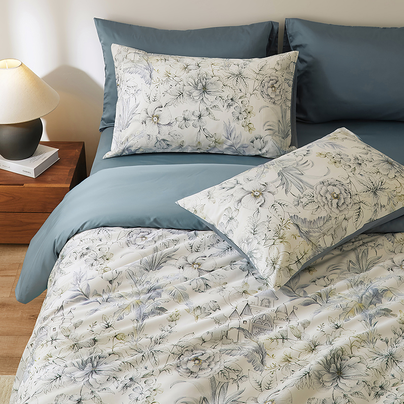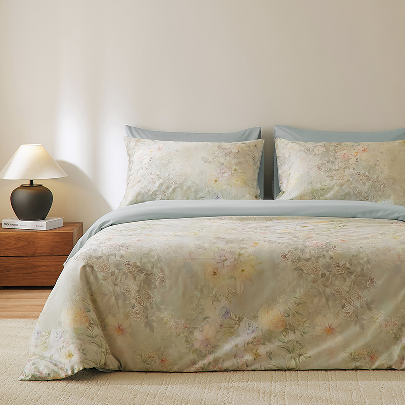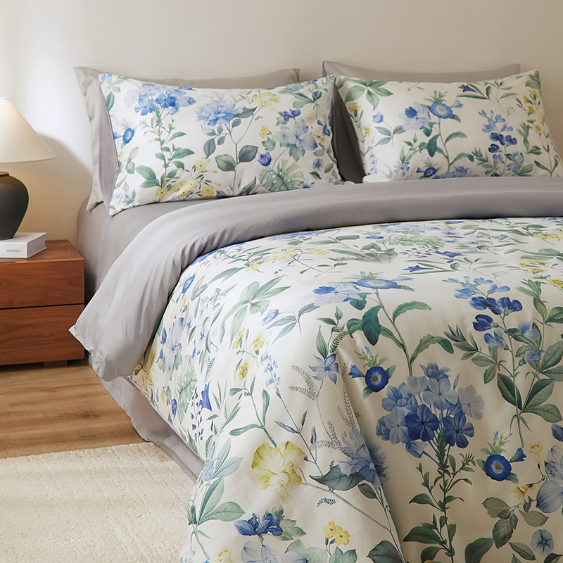 欣宜家纺 2025新款60支长绒棉数码印花系列四件套 仟云灰