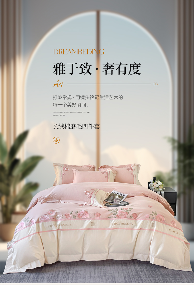 商品名称:欣宜家纺 2025新款纯棉全棉长绒棉磨毛不掉毛四件套高端礼盒-半亩花田系列 少女粉