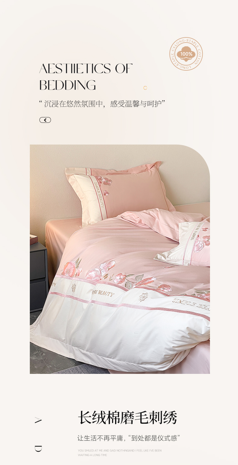 欣宜家纺 2025新款纯棉全棉长绒棉磨毛不掉毛四件套高端礼盒-半亩花田系列 少女粉
