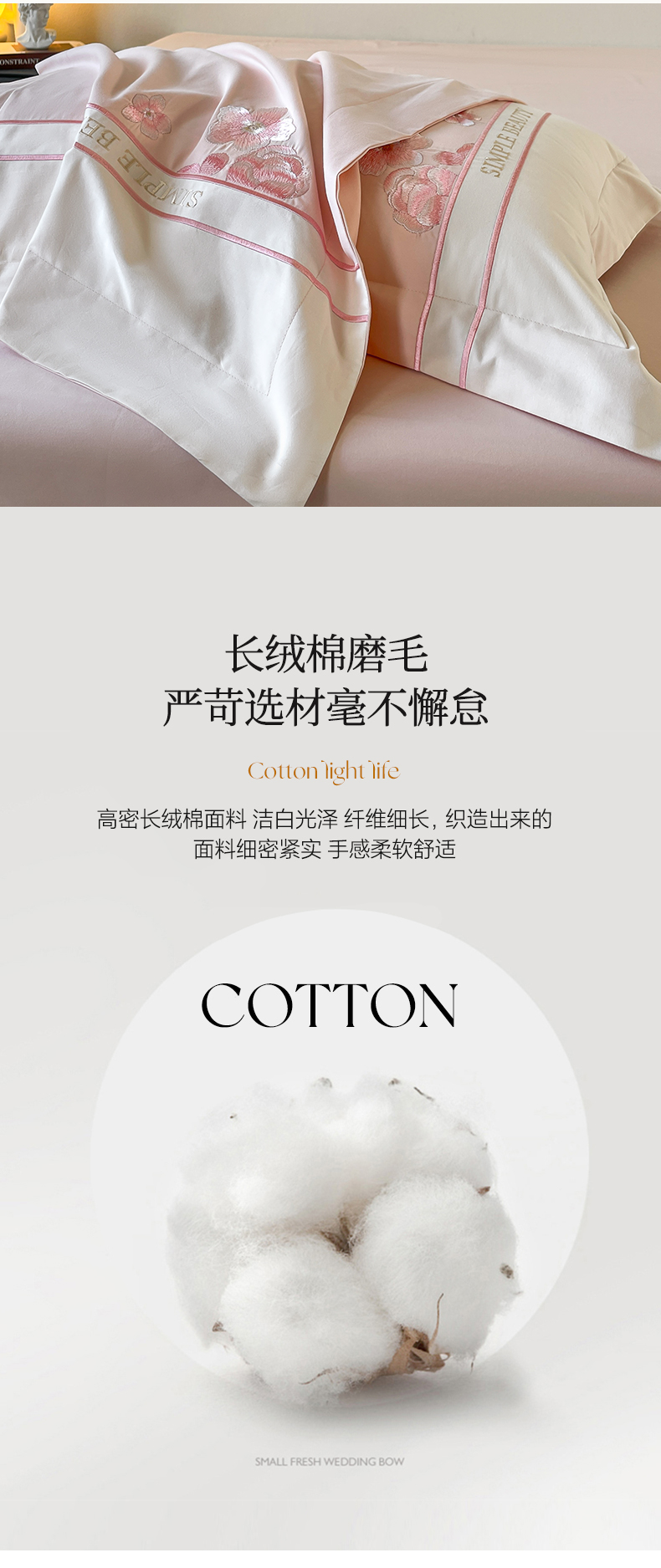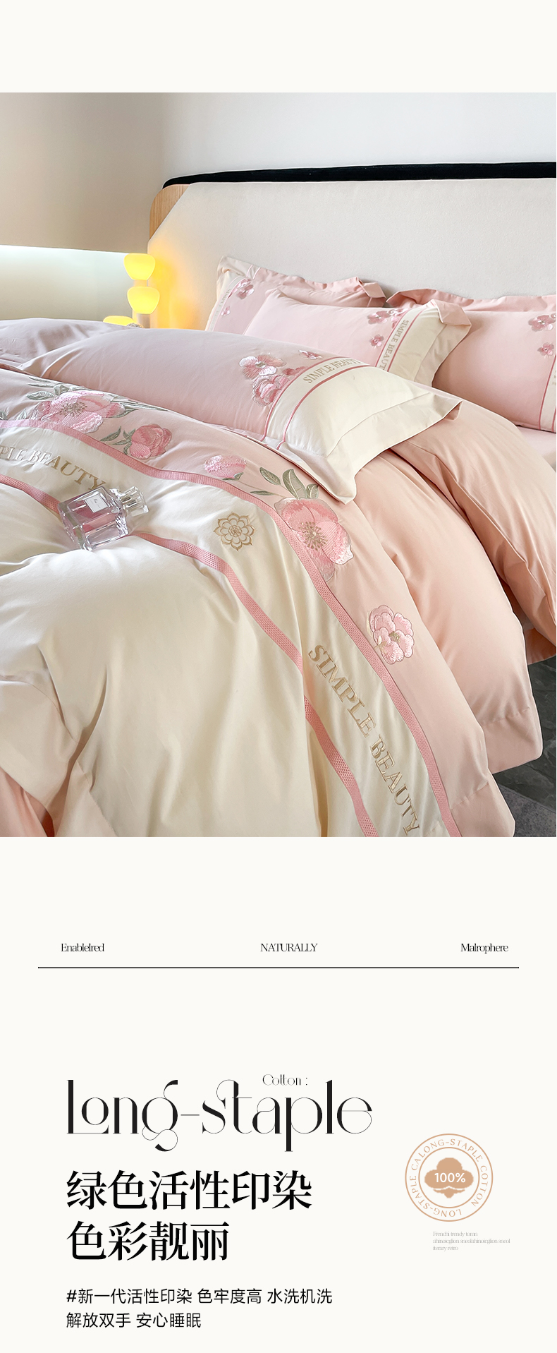(总)欣宜家纺 2026春夏新款60支A类新疆长绒棉刺绣轻奢风四件套,樱花-白粉,樱花-清香绿,樱花-少女粉,樱花-天天蓝,樱花-香芋紫