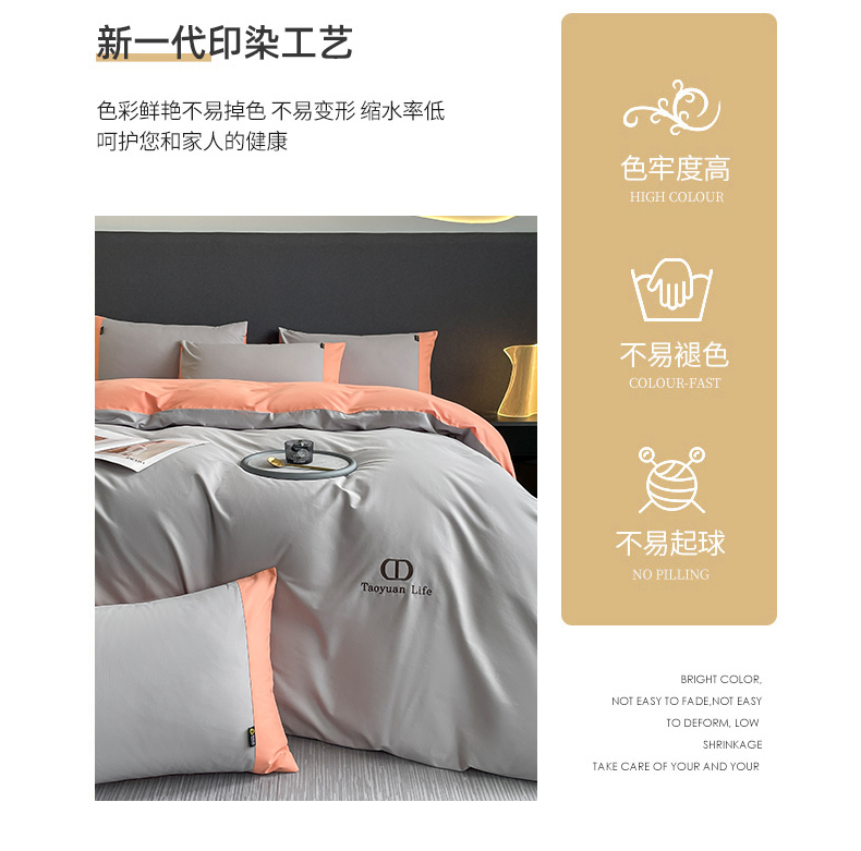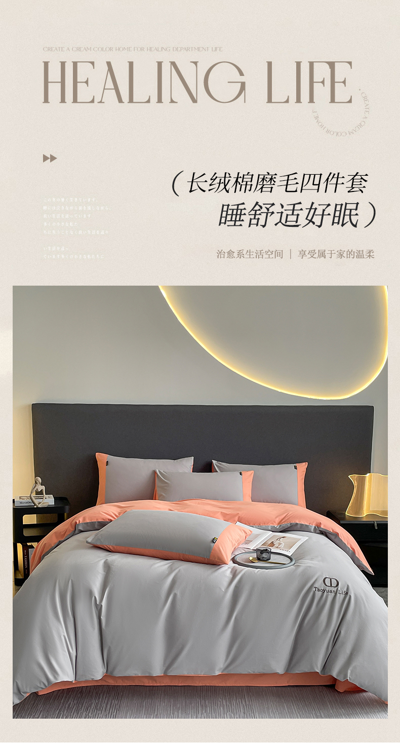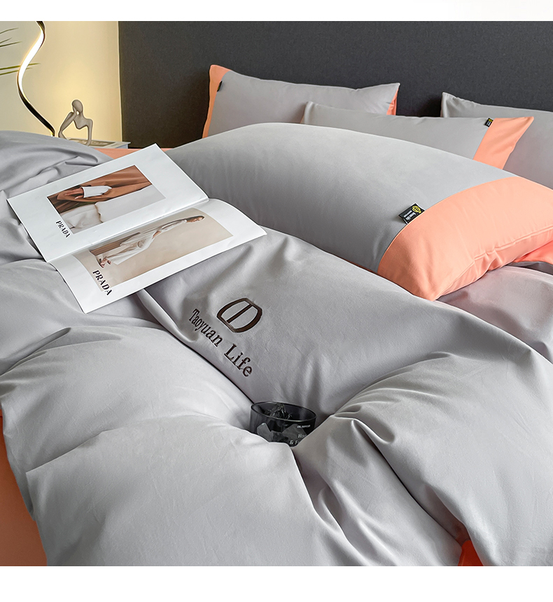 欣宜家纺 2025新款纯棉全棉长绒棉磨毛刺绣绣花四件套 莫兰迪-绅士灰