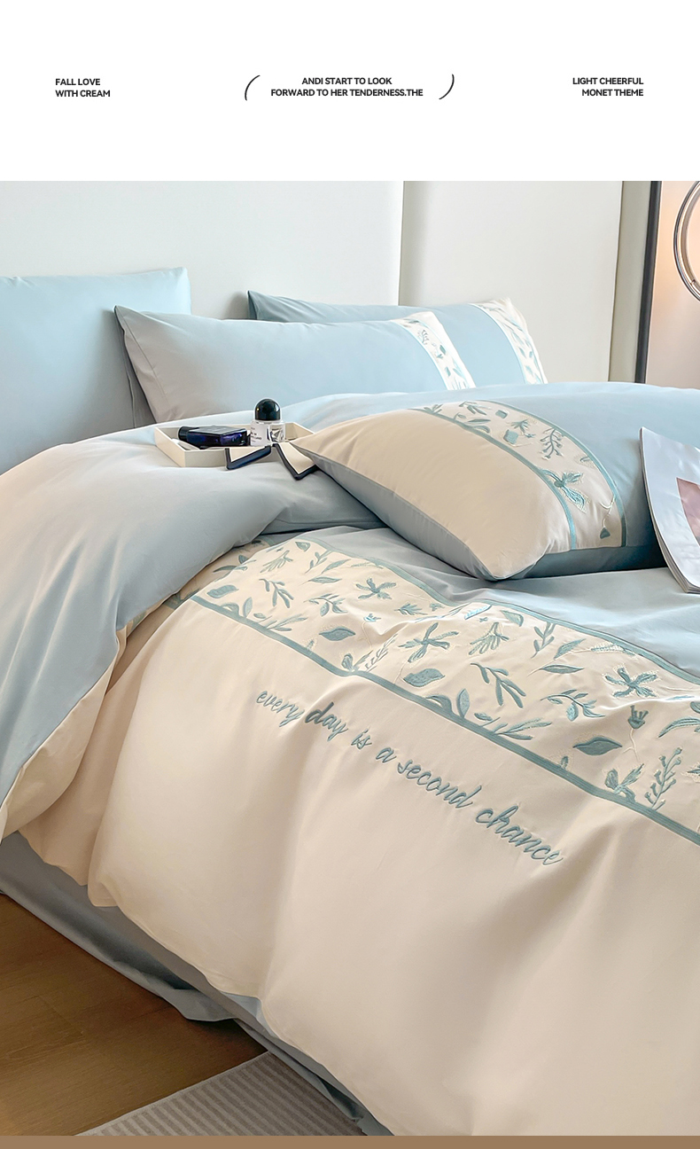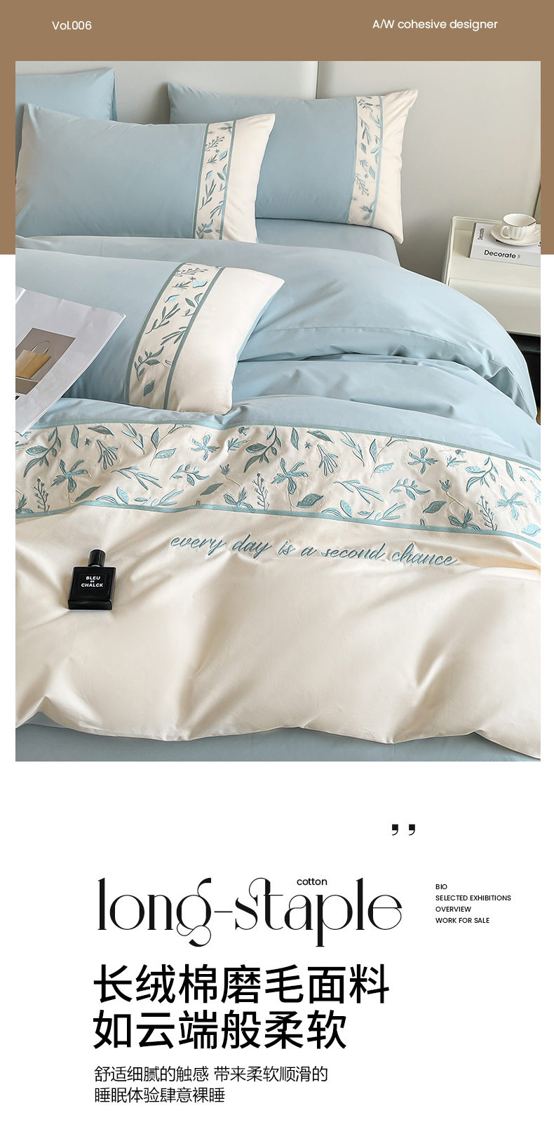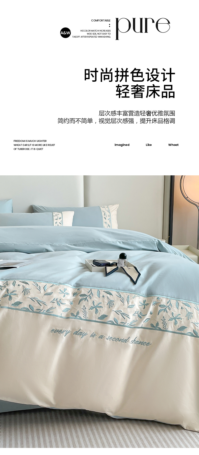 (总)欣宜家纺 2026春夏新款60支A类新疆长绒棉刺绣轻奢风四件套,樱花-白粉,樱花-清香绿,樱花-少女粉,樱花-天天蓝,樱花-香芋紫