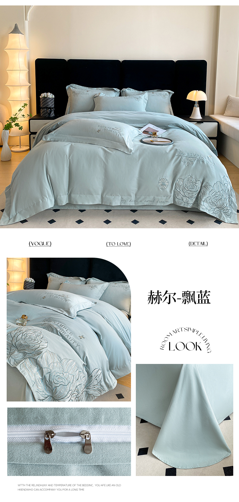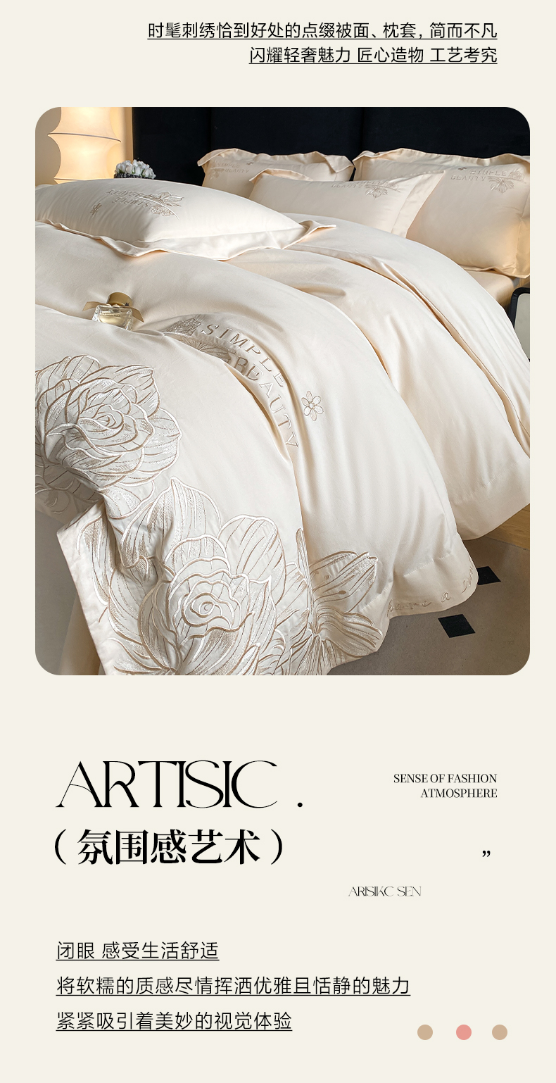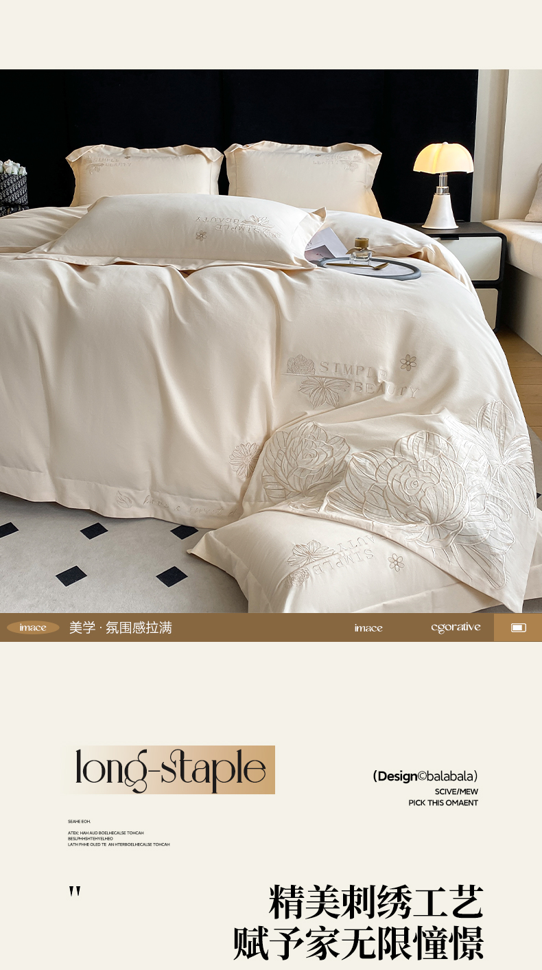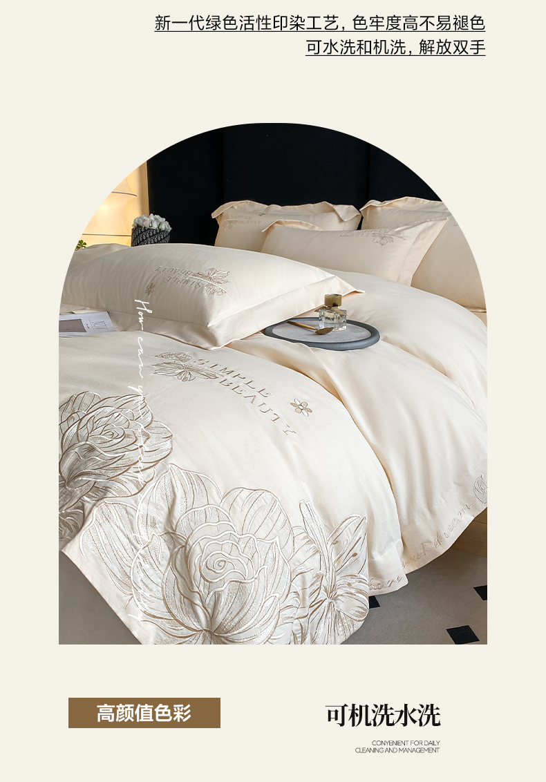商品名称:(总)欣宜家纺 2025新款纯棉全棉长绒棉磨毛不掉毛刺绣绣花四件套-赫尔系列