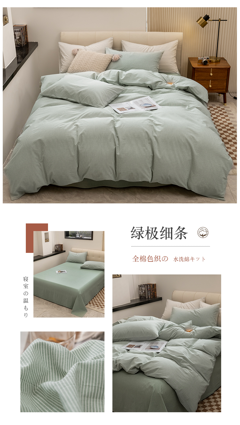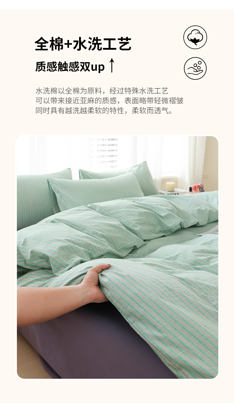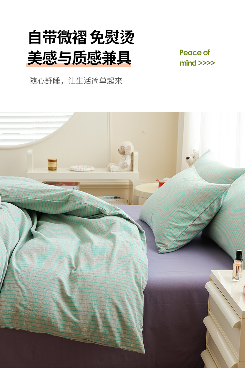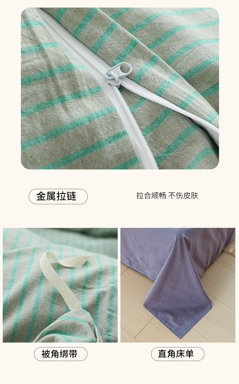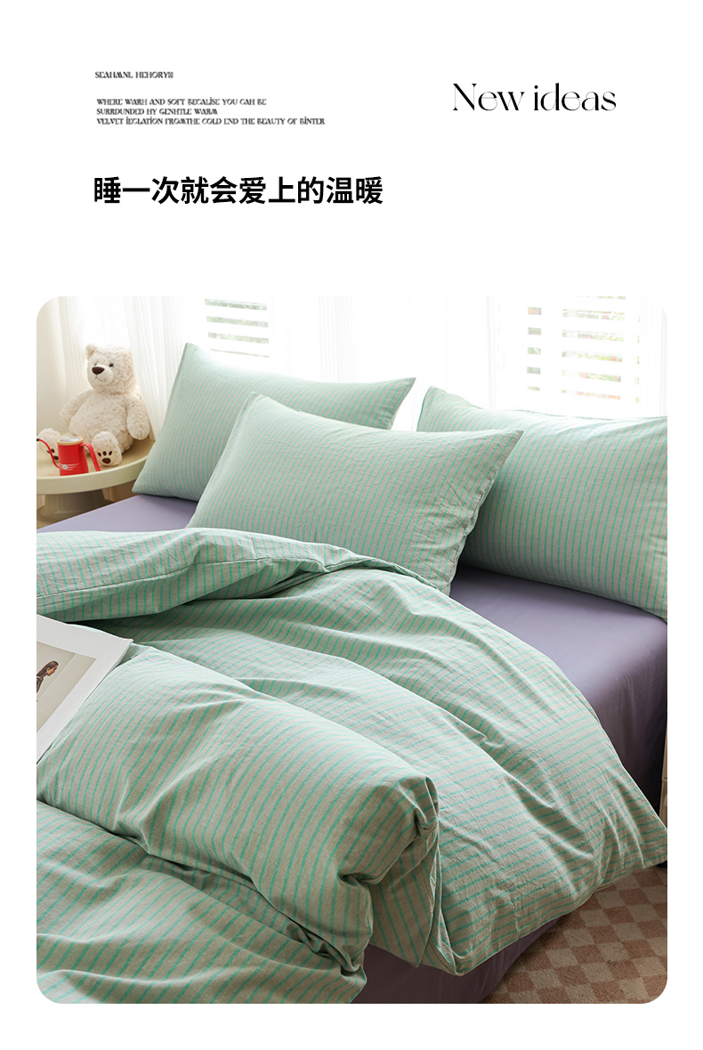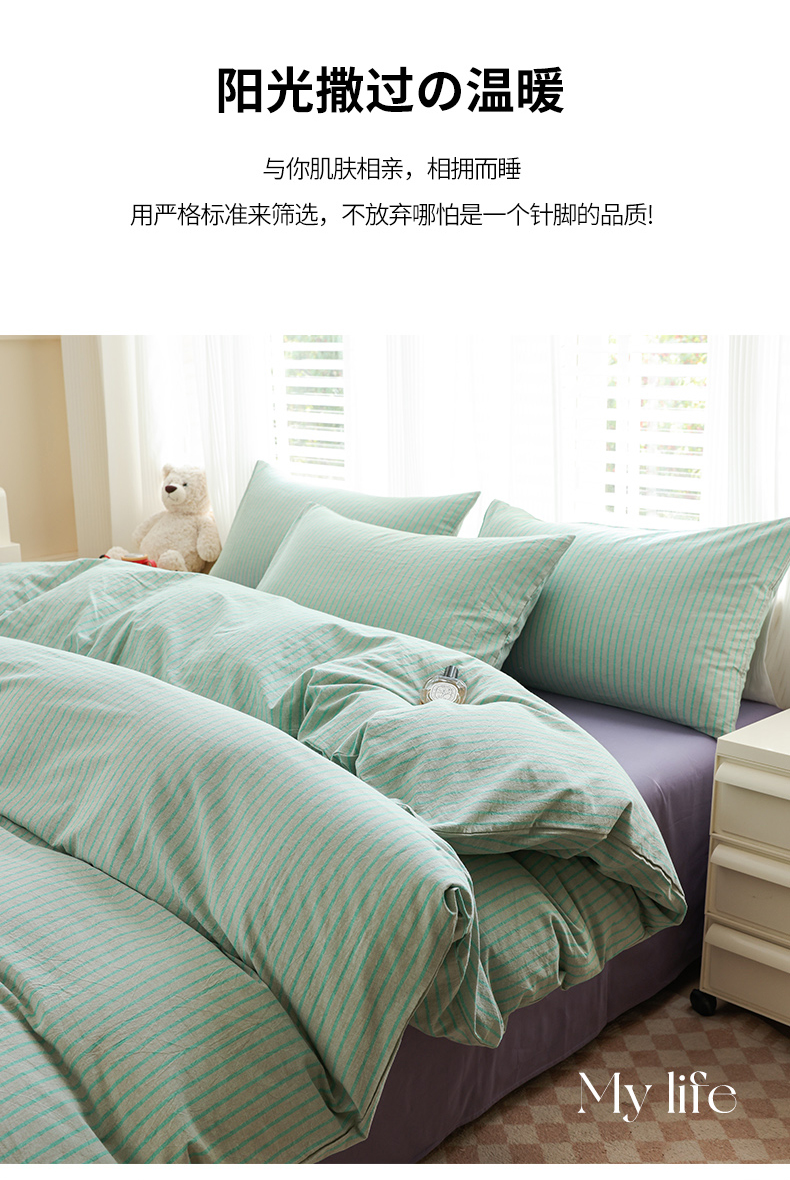 当前位置: 91家纺网 > 商品网购 > 床品套件 > 四件套 > 水洗棉四件套 > 柠萌家居 2026新款色织水洗棉四件套单被套 绿紫条