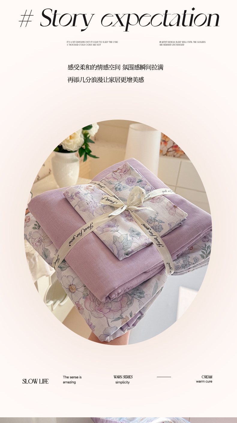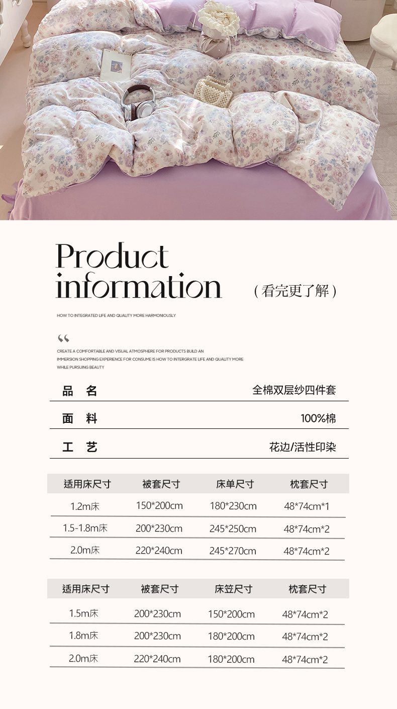 当前位置: 91家纺网 > 商品网购 > 床品套件 > 四件套 > 全棉普通四件套 > 红淳家纺 2026新款全棉A类双层纱四件套 花漾