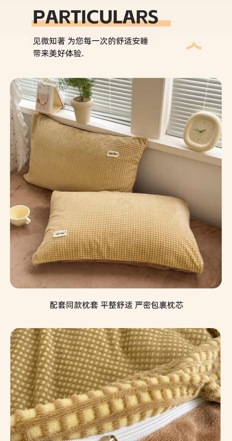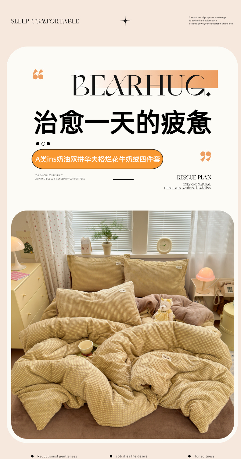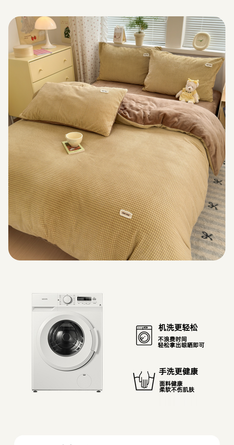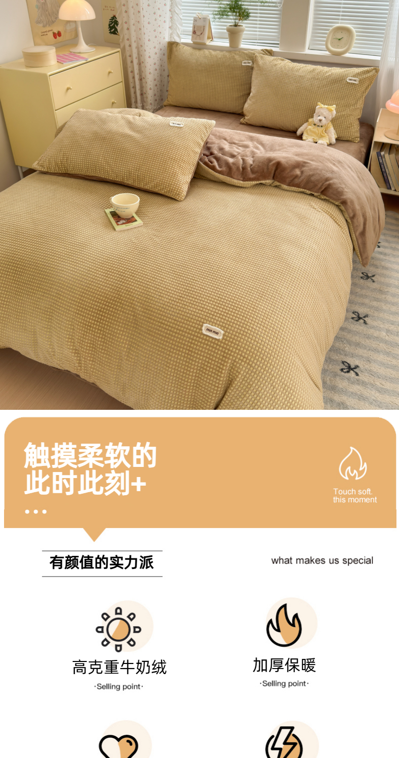 商品名称:欣宜家纺 2025秋冬新款ins奶油风双拼华夫格烂花雕花绒牛奶绒四件套 华夫格-奶咖