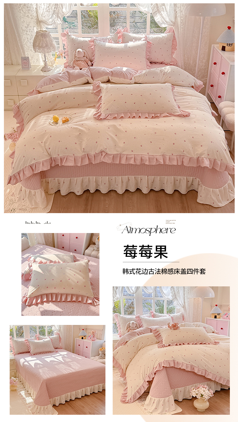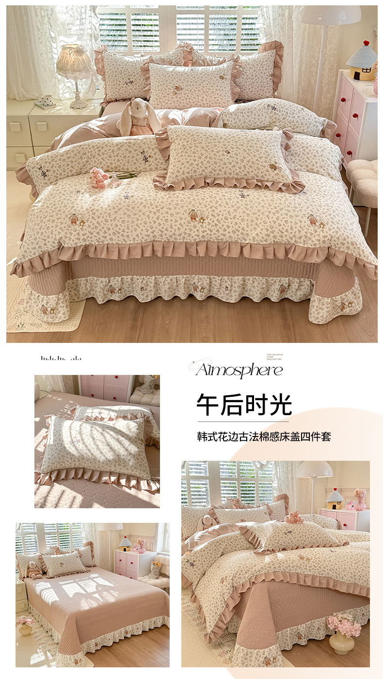 当前位置: 91家纺网 > 商品网购 > 床品套件 > 四件套 > 化纤普通四件套 > 韩约家纺 2026新款韩式花边古法棉感床盖四件套 知否