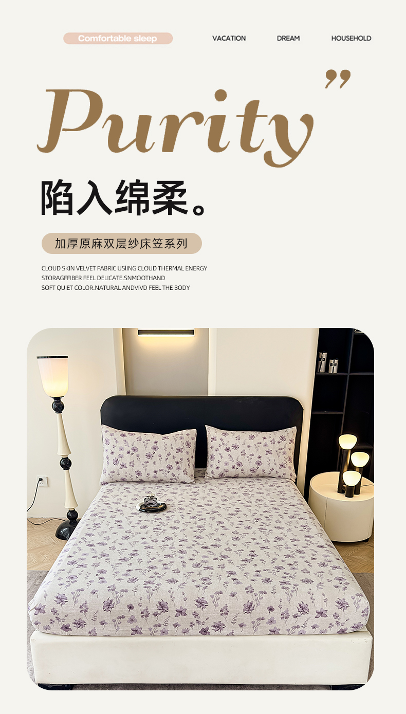 当前位置: 91家纺网 > 商品网购 > 床上用品 > 床笠 > 欣宜家纺 2025新款高克重双层纱仿麻皱皱纱原麻床笠 暗香