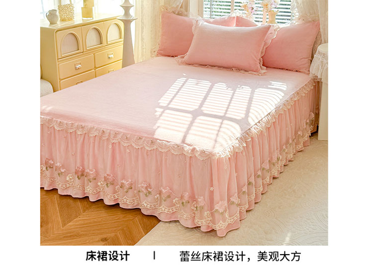 商品名称:(总)苏米娜2025秋冬新款230g双层绣花花边全消光牛奶绒床裙款四件套纯色蕾丝花边刺绣床裙款三件套