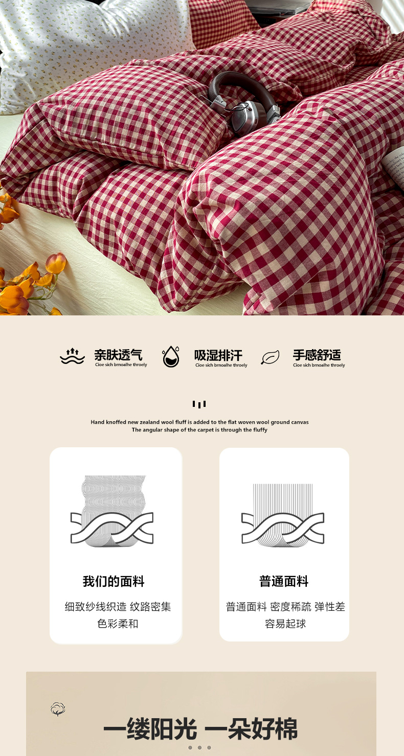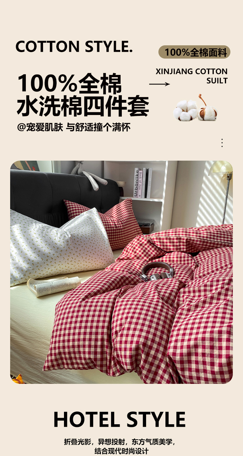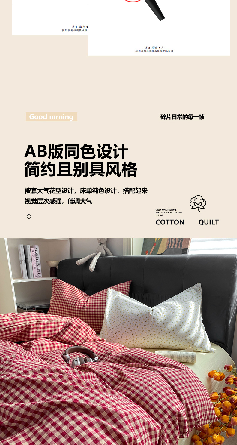 当前位置: 91家纺网 > 商品网购 > 床品套件 > 四件套 > 水洗棉四件套 > 对白 2026新款ins风全棉色织水洗棉纯棉简约极简格子系列四件套-草莓奶昔【提供买家秀】 草莓奶昔(枕套小花)