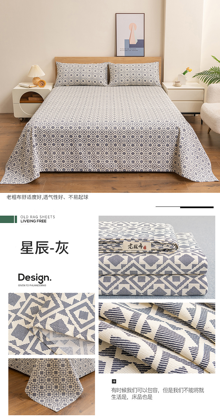 • 91家纺网 家纺一手货源 找家纺 居美良品 2026新款无印风正宗加厚老粗布床单单件枕套三件套可做凉席 波澜-条