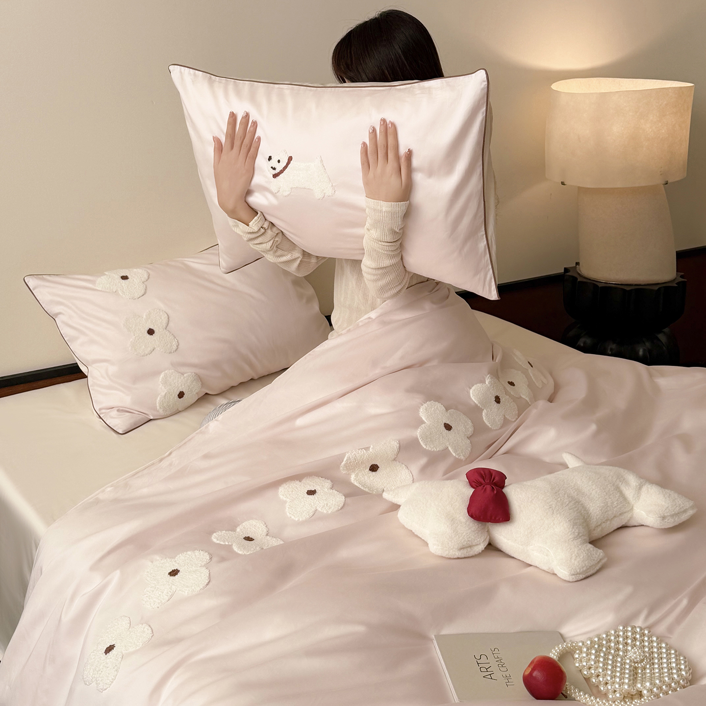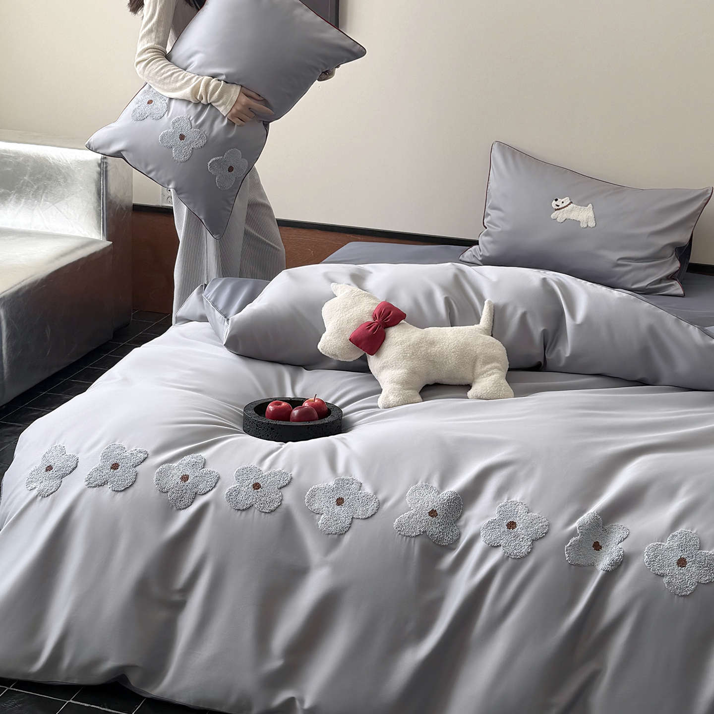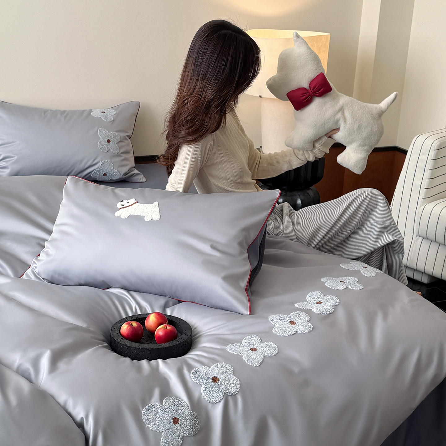 当前位置: 91家纺网 > 商品网购 > 床品套件 > 四件套 > 长绒棉四件套 > 鹿班家居 2026春季新品100S长绒棉毛巾绣系列四件套-小狗绮梦(标准会员-20元) 小狗绮梦-灰蓝