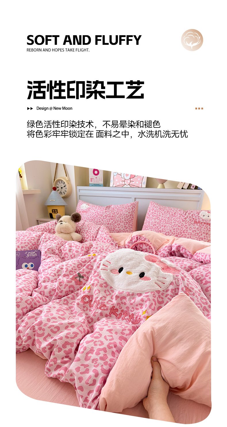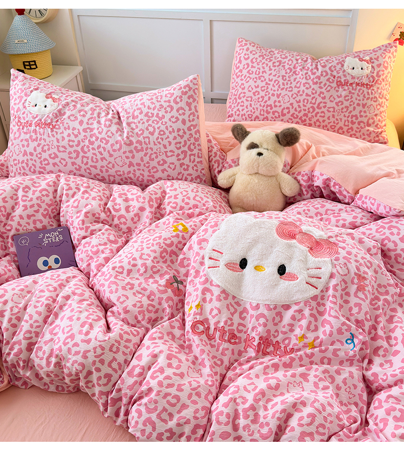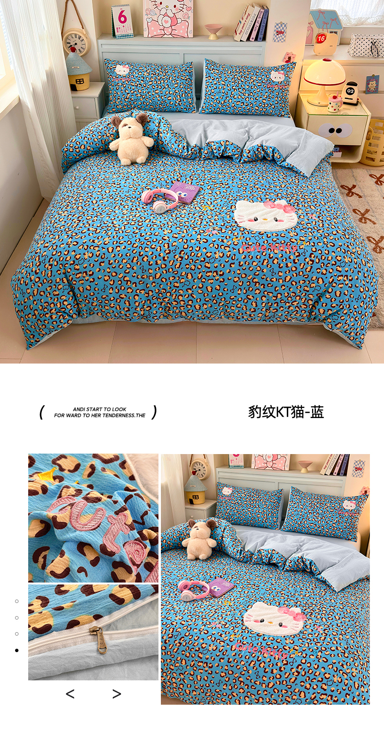 当前位置: 91家纺网 > 商品网购 > 床品套件 > 四件套 > 毛巾绣四件套 > (总)橙意 2026新款云感双层纱贴布绣四件套-豹纹KT猫