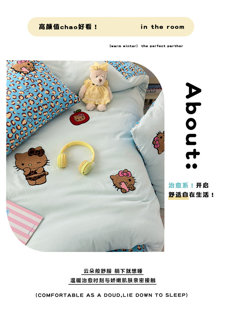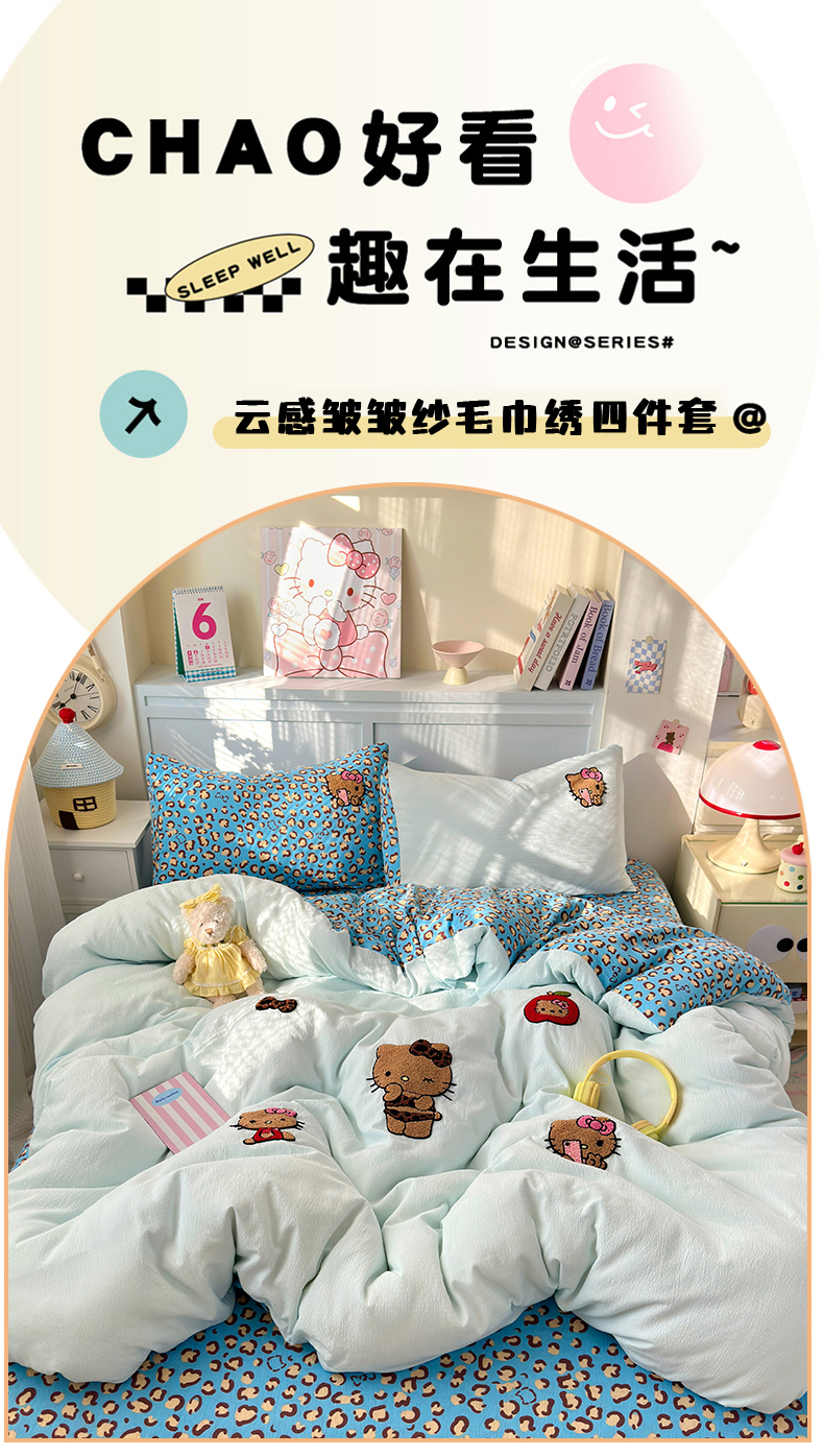 当前位置: 91家纺网 > 商品网购 > 床品套件 > 四件套 > 毛巾绣四件套 > 橙意 2026新款云感双层纱贴布绣四件套-黑皮KT猫 黑皮KT猫-蓝