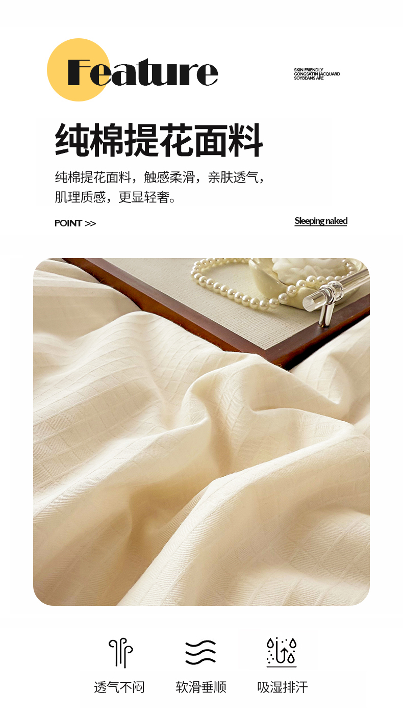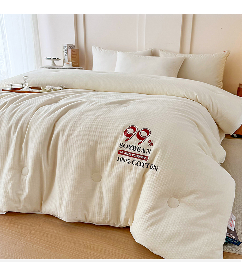 (总)兰芯纭 2026新款99%纯棉提花大豆夏被夏凉被空调被,米白