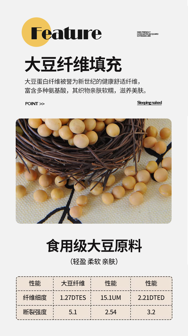 填充纤维种类: 大豆蛋白改性聚酯纤维