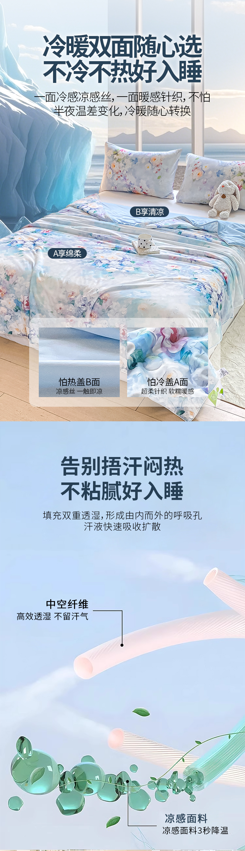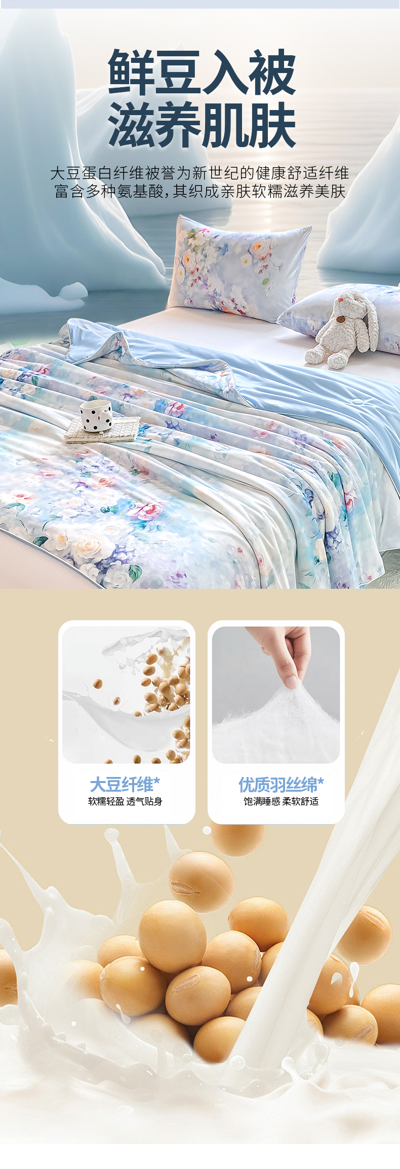 商品名称:延遥2025年新款凉感丝夏被大豆纤维填充针织棉空调被学生宿舍夏凉被 沁园花语