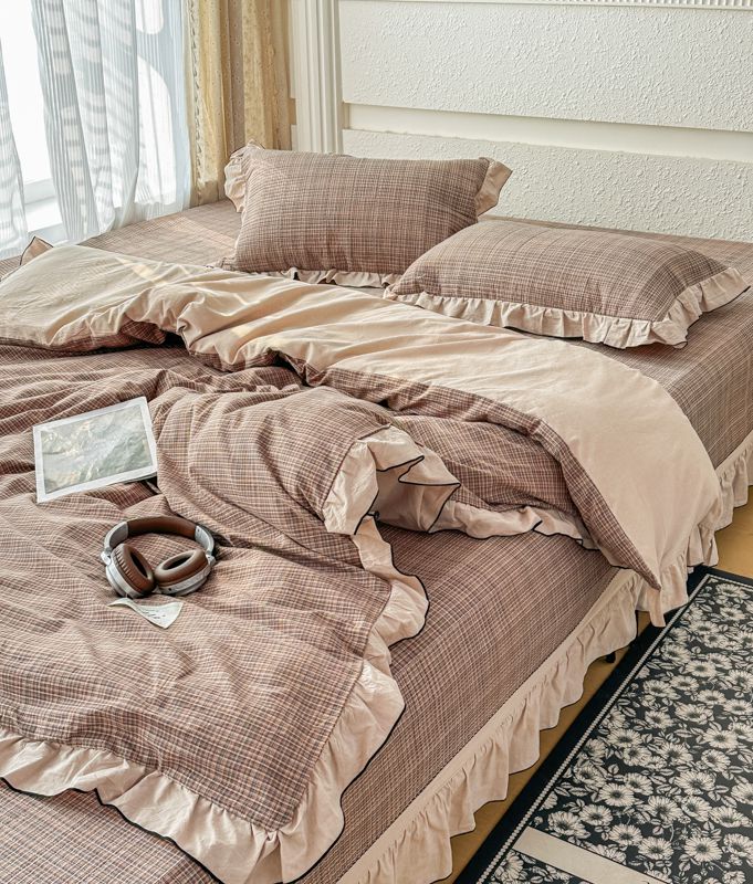 暖居 2026新款色织全棉水洗棉填充棉花高温砂洗床盖四件套 英伦格纹
