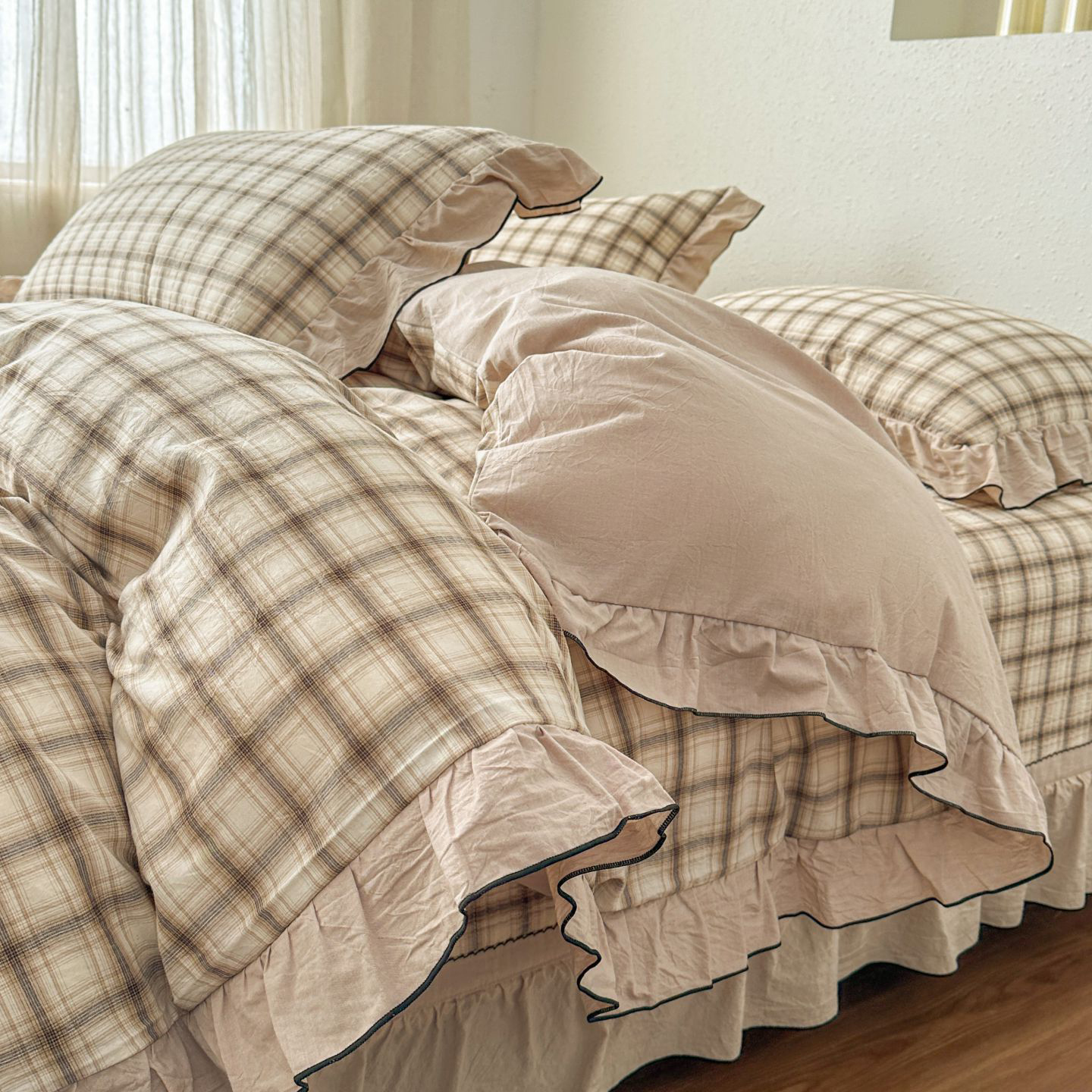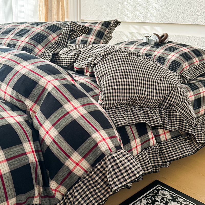 商品名称:暖居 2026新款色织全棉水洗棉填充棉花高温砂洗床盖四件套 英伦格纹