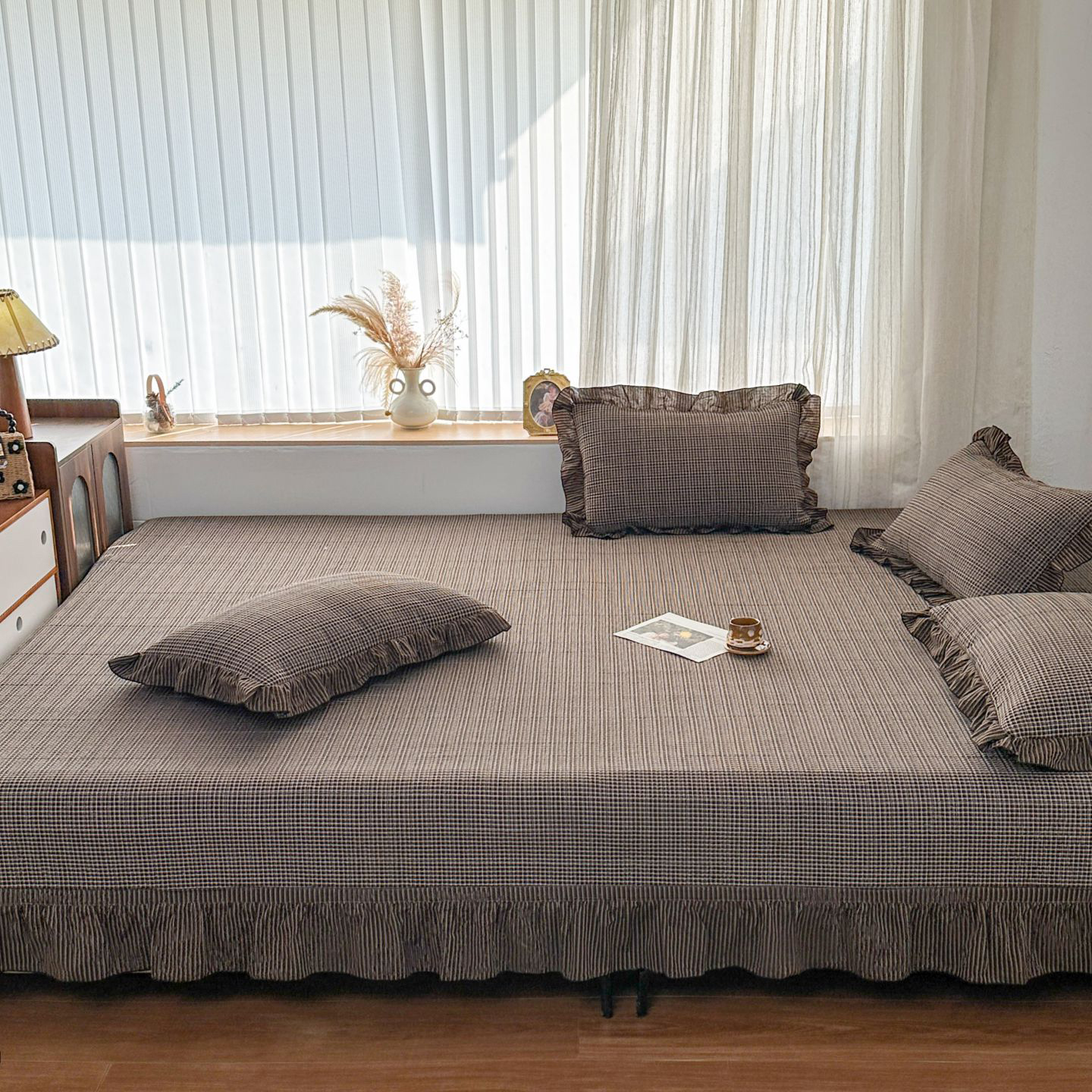 (总)暖居 2026新款全棉纯棉色织榻榻米三件套四件套单件大炕盖支持定制,黄小格,经典红咖格,经典咖小格,蓝格子,抹茶绿,紫色格子