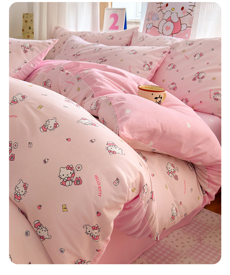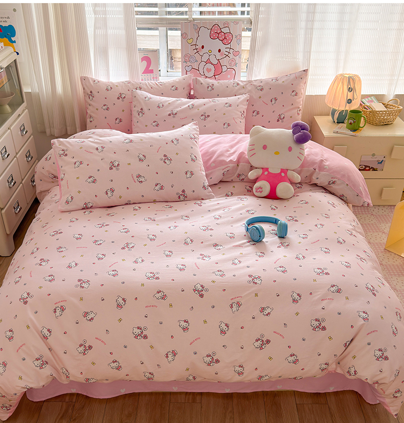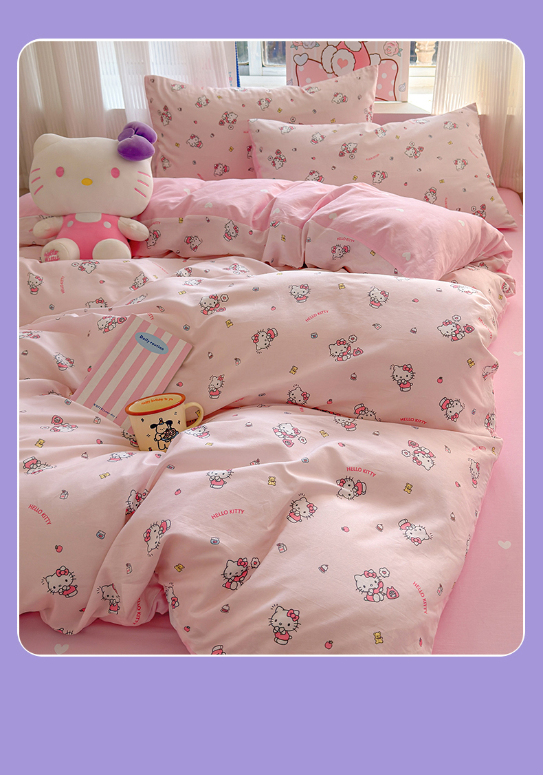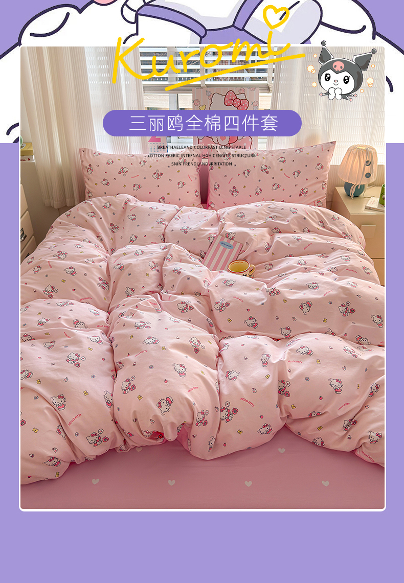 (总)曼之夏 2026新款全棉三丽鸥正版授权卡通四件套,波点美乐蒂,电话凯蒂,都市凯蒂,红格凯蒂,蝴蝶结大耳狗,凯蒂果果,蘑菇凯蒂,牛奶凯蒂,甜甜凯蒂,晚安大耳狗,樱桃凯蒂,游乐园大耳狗,元气美乐蒂,运动凯蒂