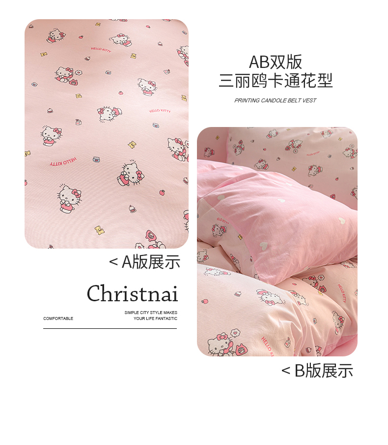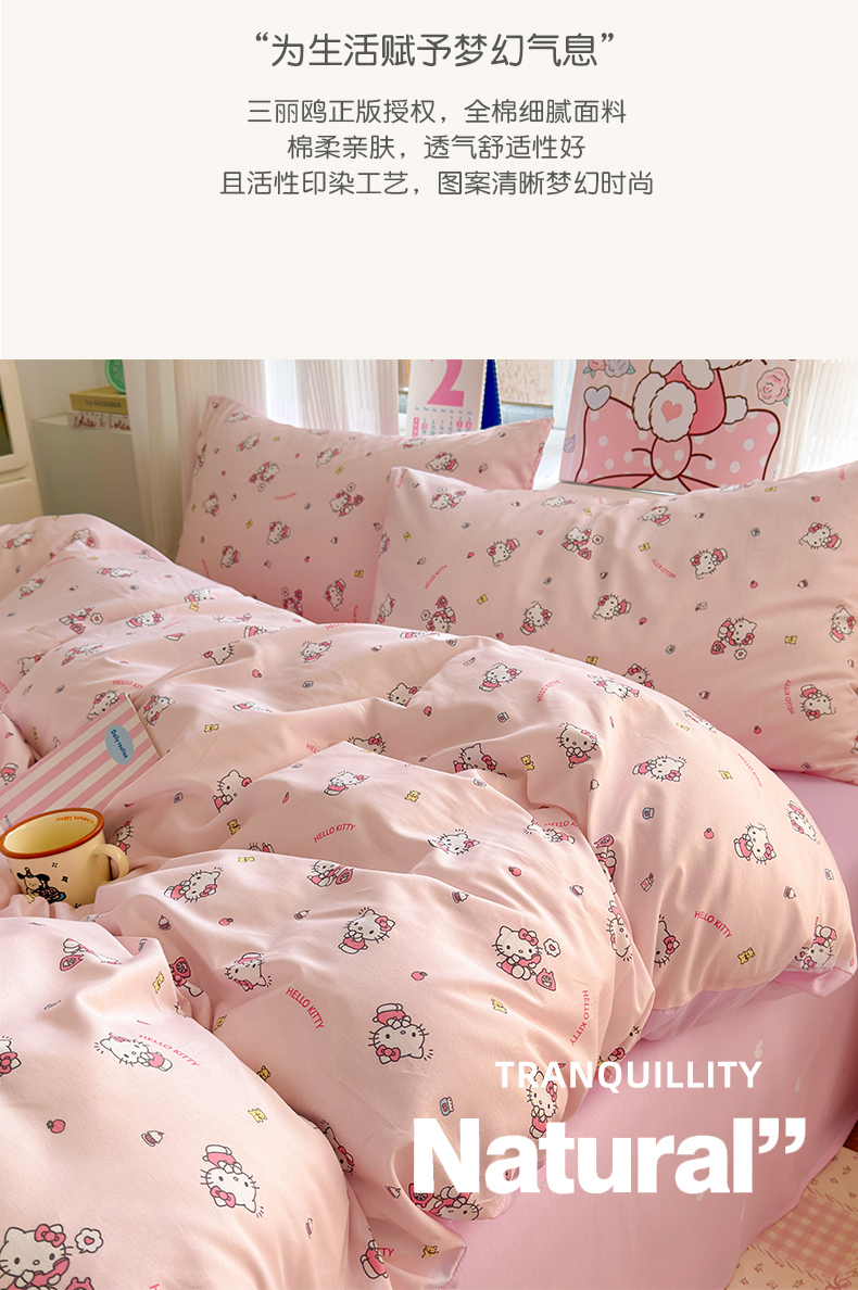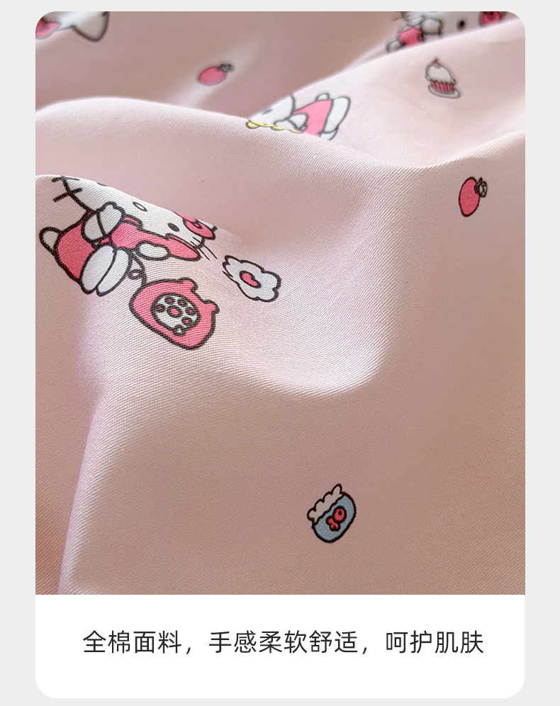 商品名称:曼之夏 2026新款全棉三丽鸥正版授权卡通四件套 电话凯蒂