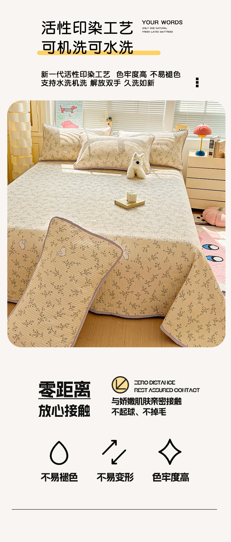 • 91家纺网 家纺一手货源 找家纺 优选 2026新款木棉印花床盖三件套 花花兔兔