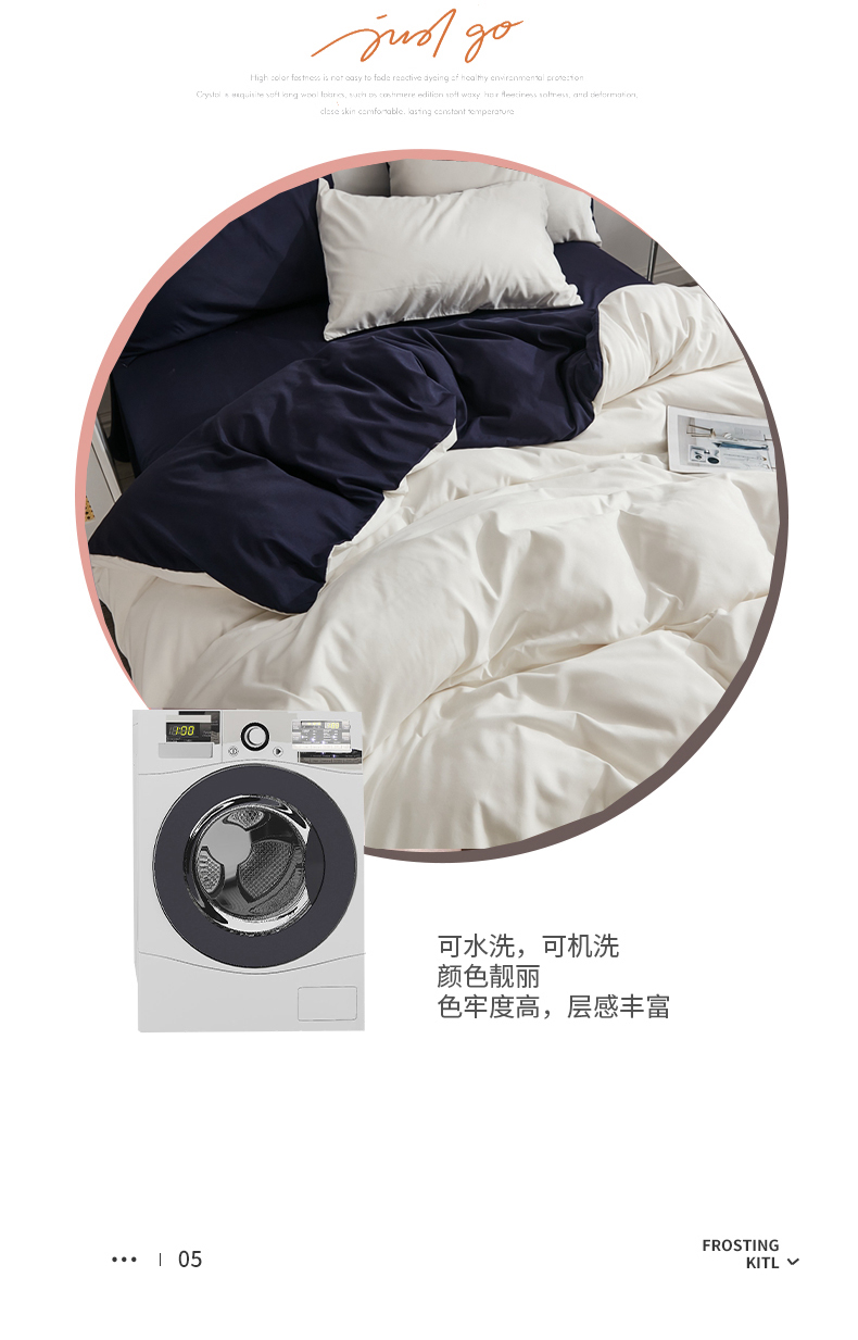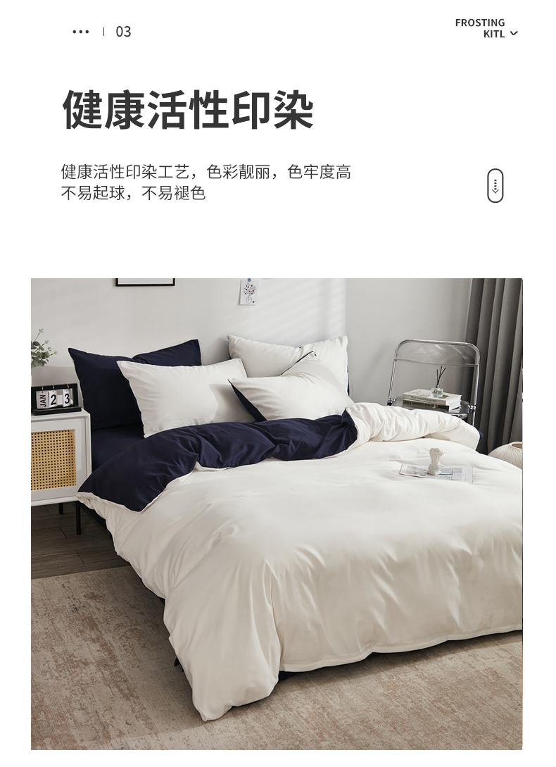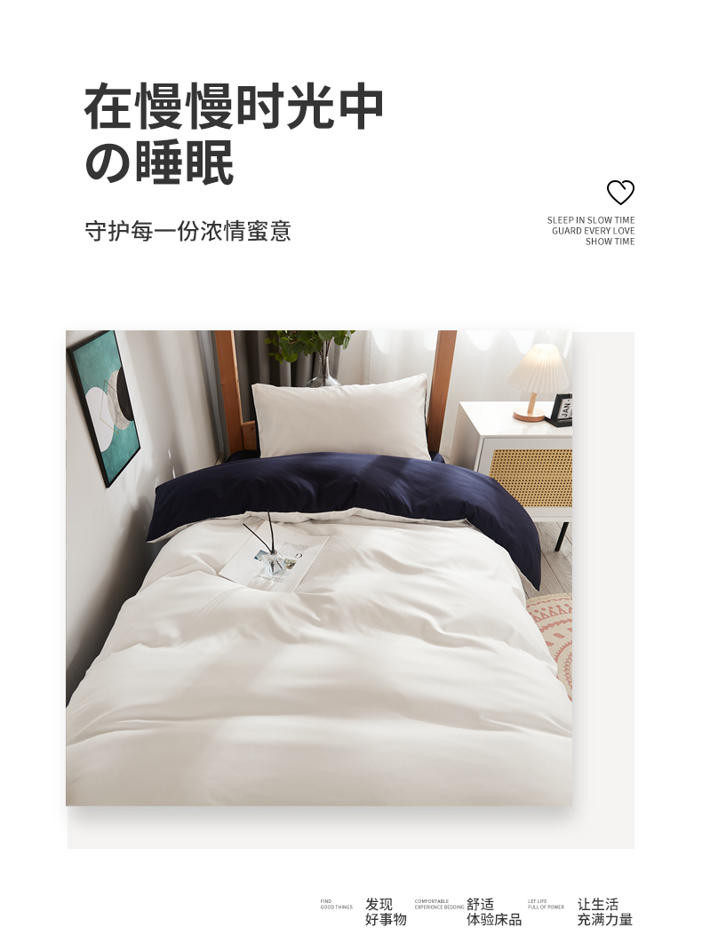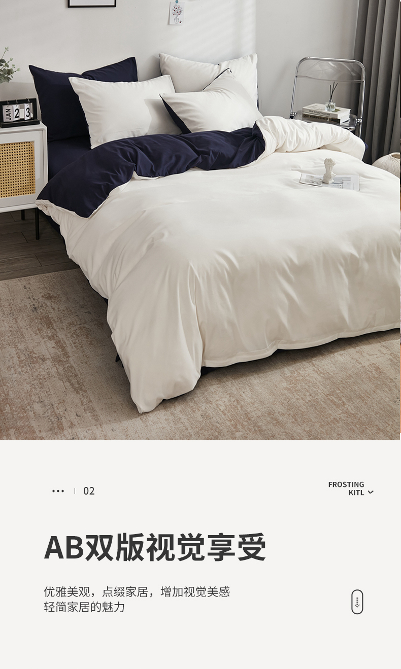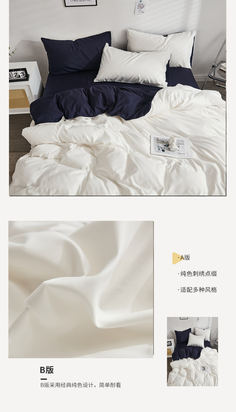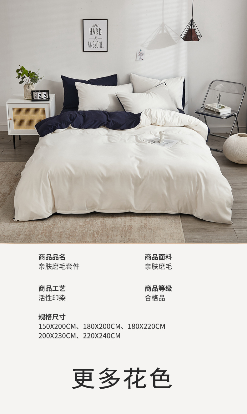 商品名称:啊雅家居 2026新款ins简约纯色磨毛被套可订制logo 米白加藏青