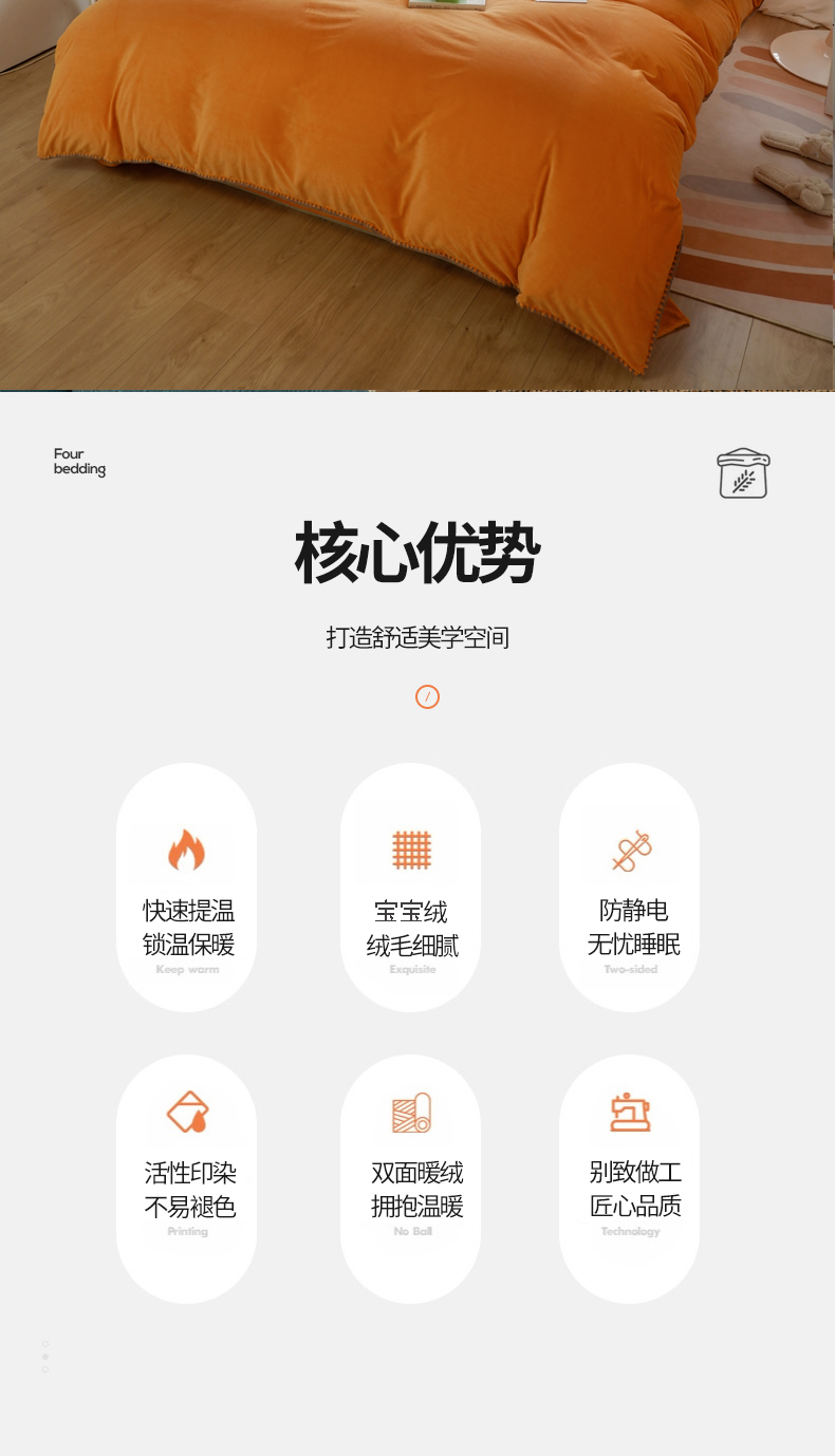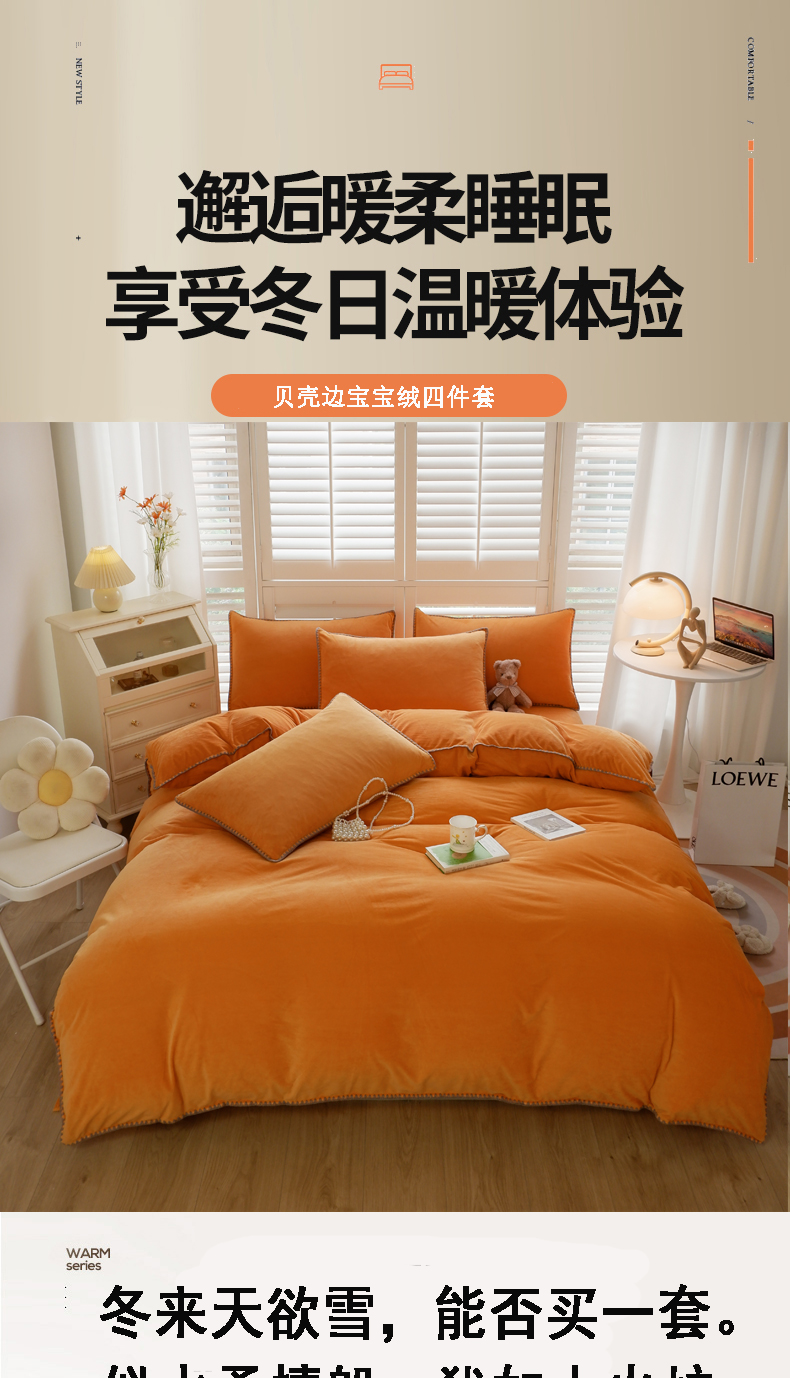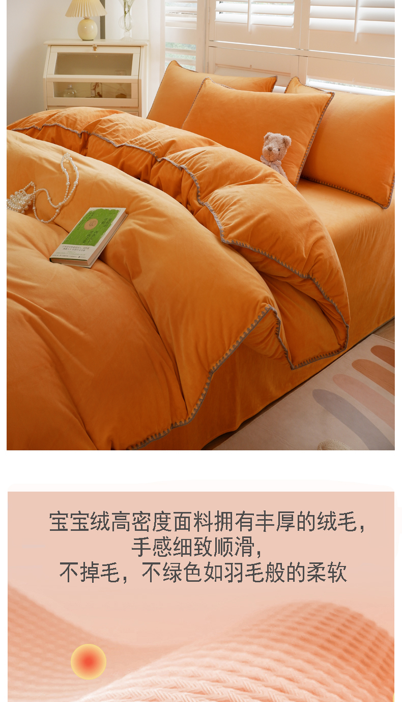 当前位置: 91家纺网 > 商品网购 > 床品套件 > 四件套 > 其它四件套 > 啊雅家居 2026新款贝壳边宝宝绒四件套 贝壳果橙
