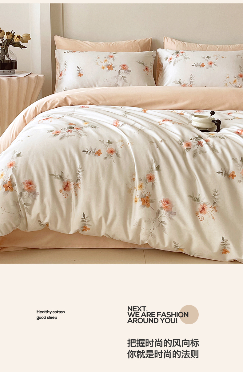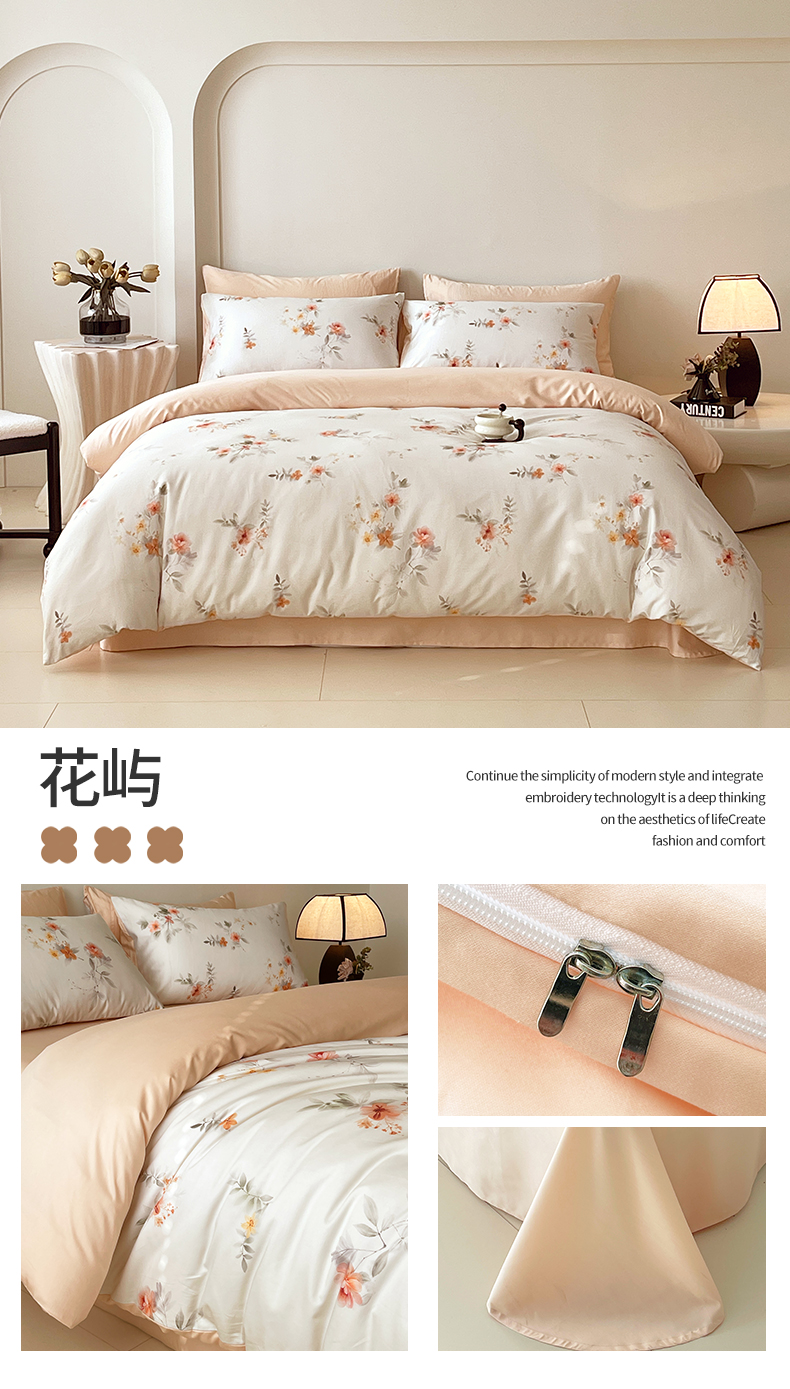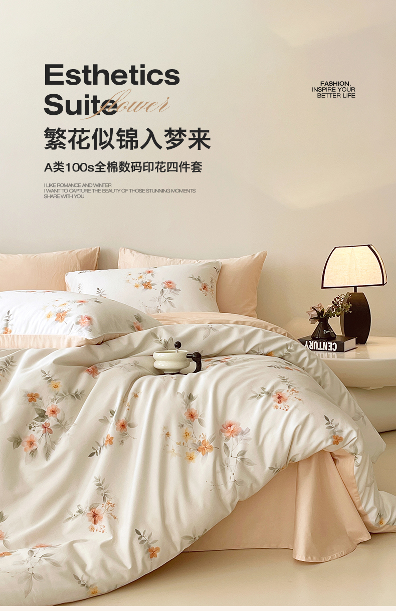 (总)鼎飞家纺 2026新款100S长绒棉数码印花四件套-花屿