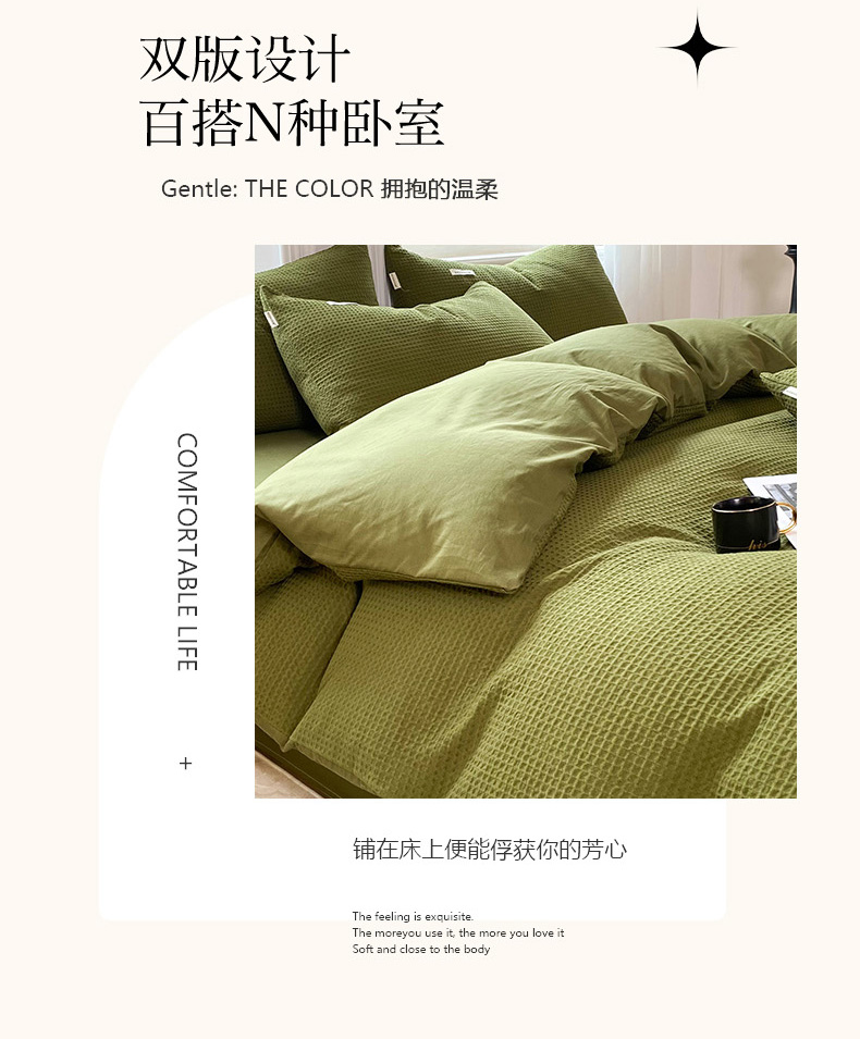 当前位置: 91家纺网 > 商品网购 > 床品套件 > 四件套 > 全棉普通四件套 > 眠博士 2026新款简约时尚全棉华夫格四件套(提供买家秀)简约款 松绿