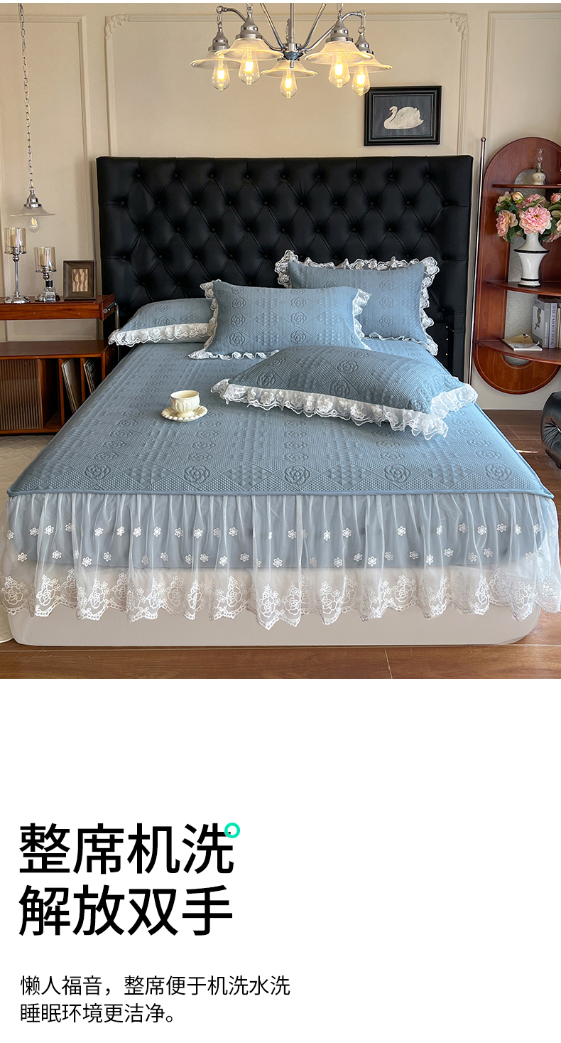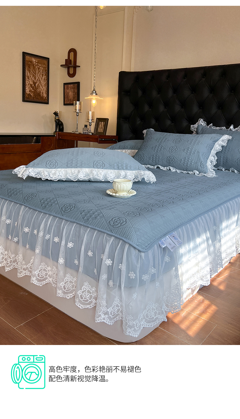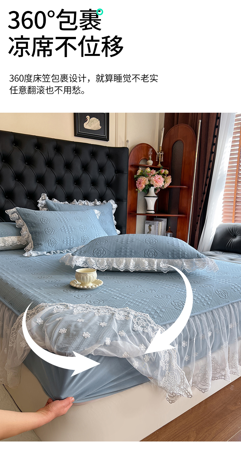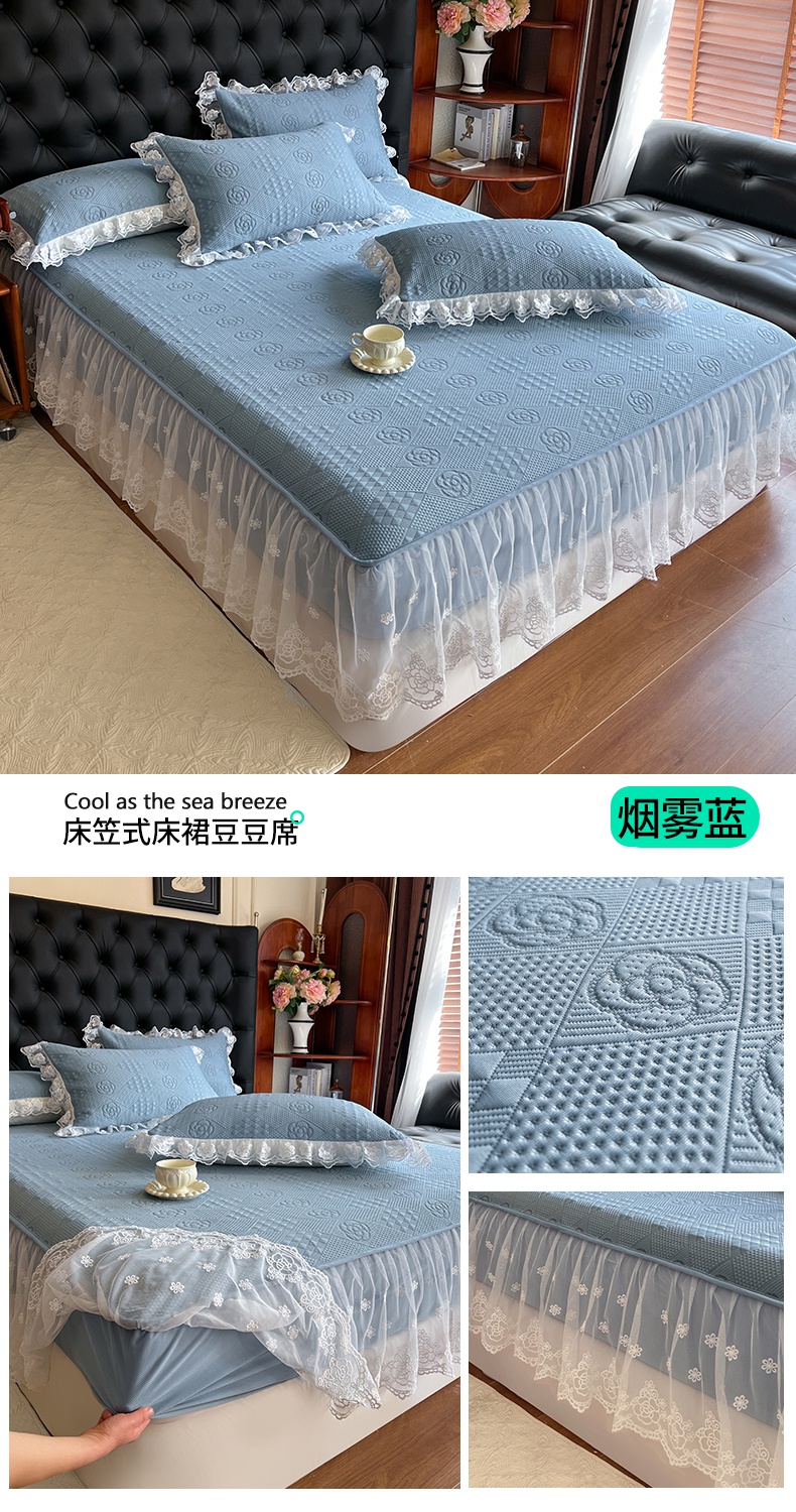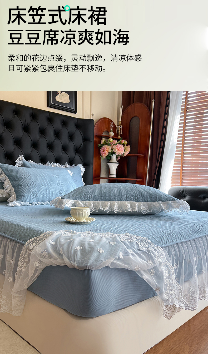 网红馆(ck家纺) 2026新款床笠式床裙豆豆冰凉席-瑞莎 烟雾蓝