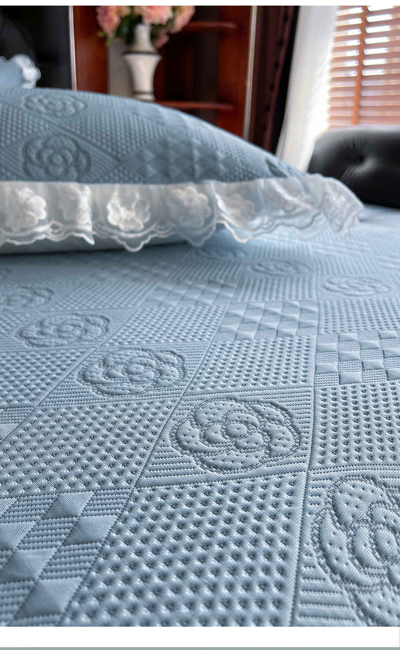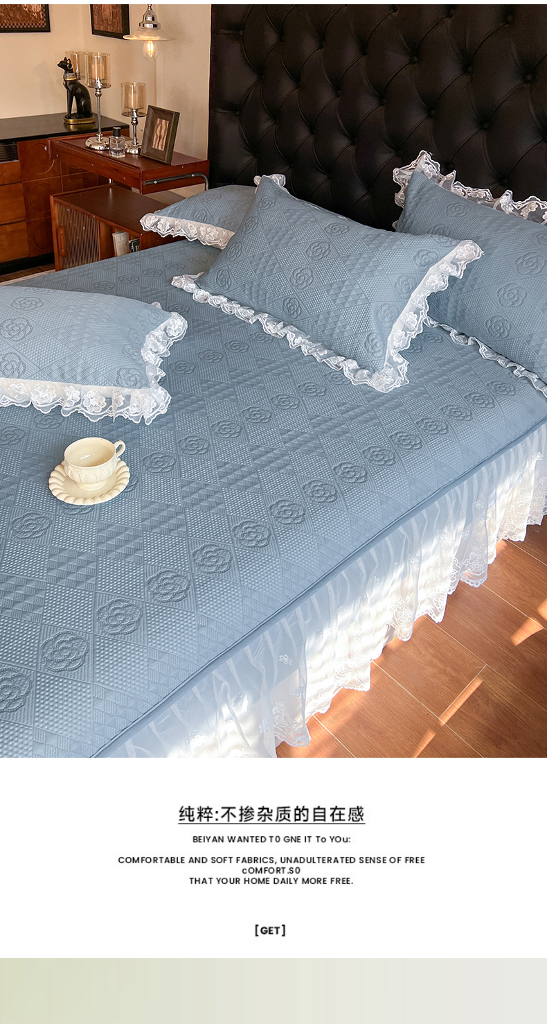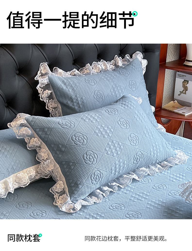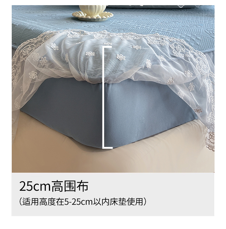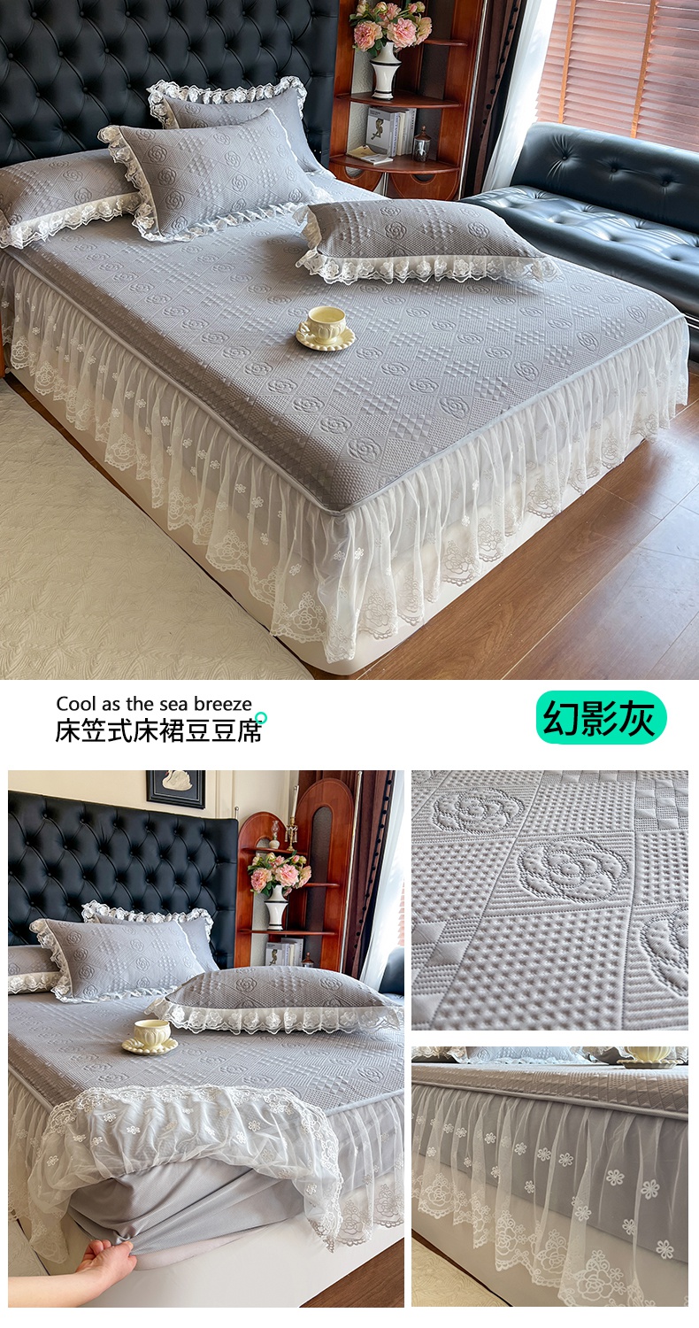 网红馆(ck家纺) 2026新款床笠式床裙豆豆冰凉席-瑞莎 烟雾蓝
