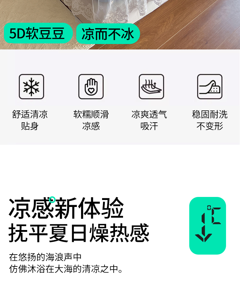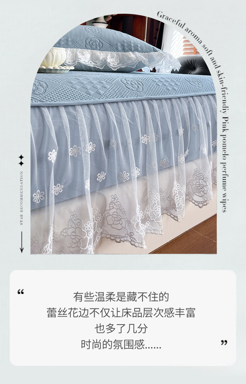 商品名称:网红馆(ck家纺) 2026新款床笠式床裙豆豆冰凉席-瑞莎 烟雾蓝