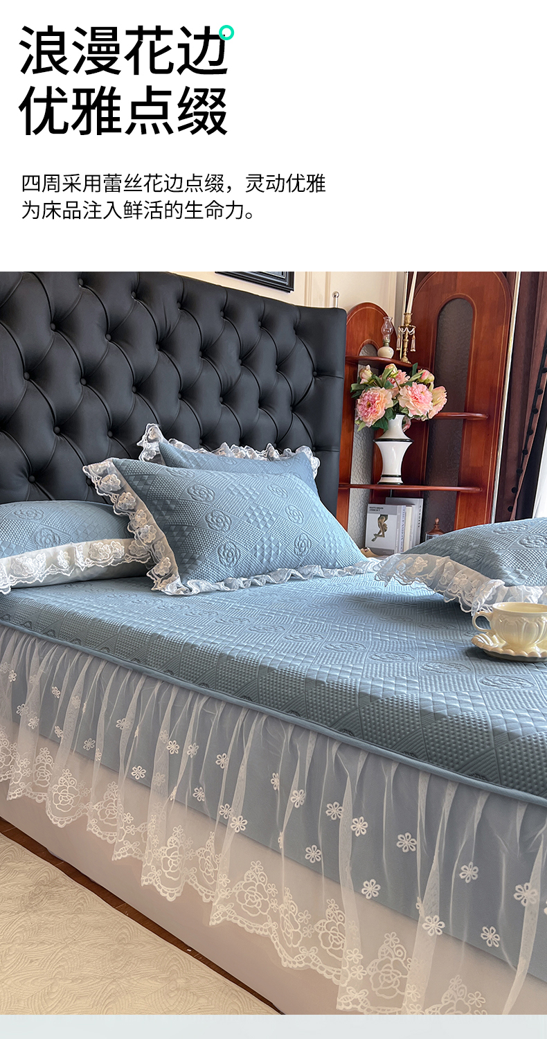 (总)网红馆(ck家纺) 2026新款色织蕾丝边床裙款床笠,宝石蓝,黛绿色,浪漫紫,奶茶色,石青,香妃粉,烟熏灰