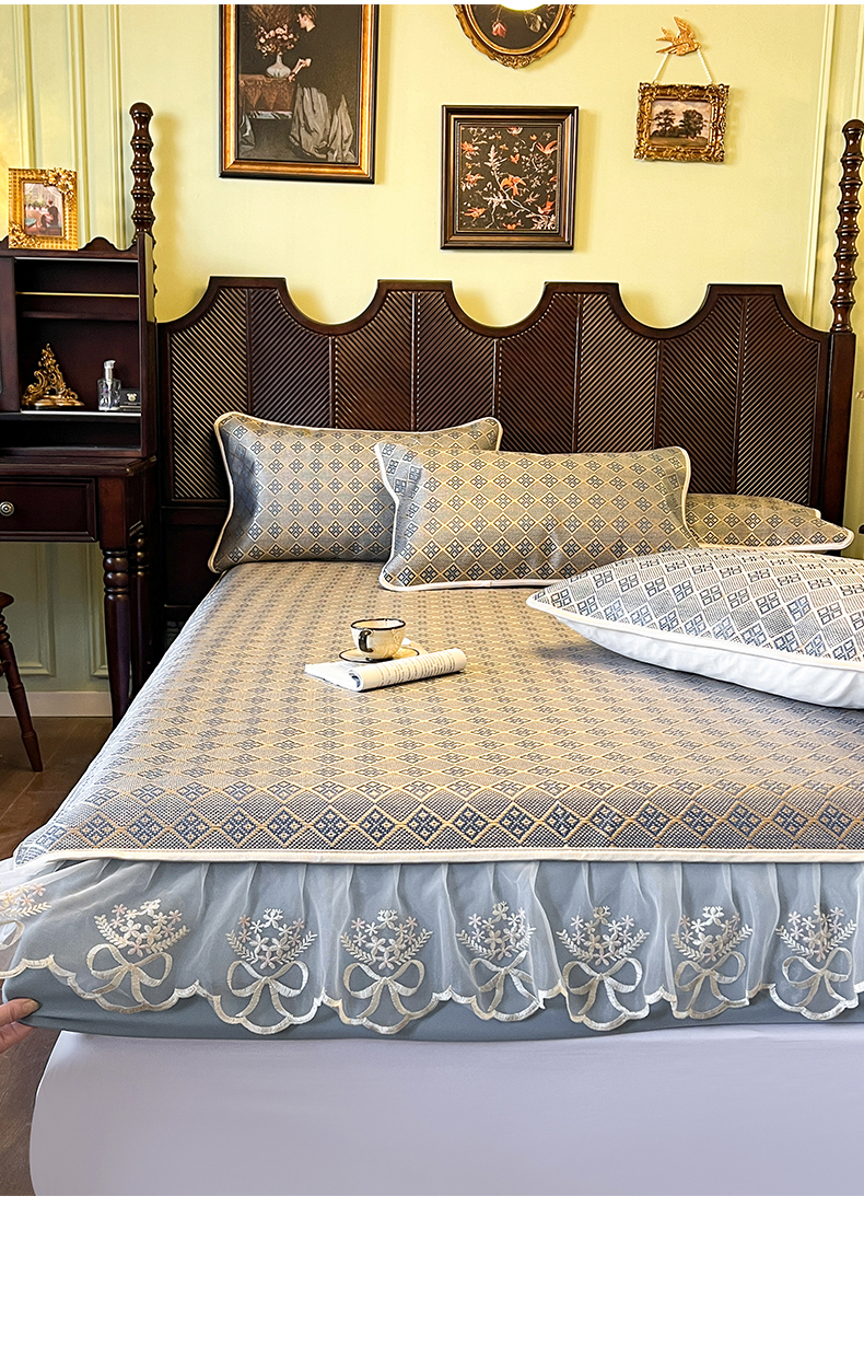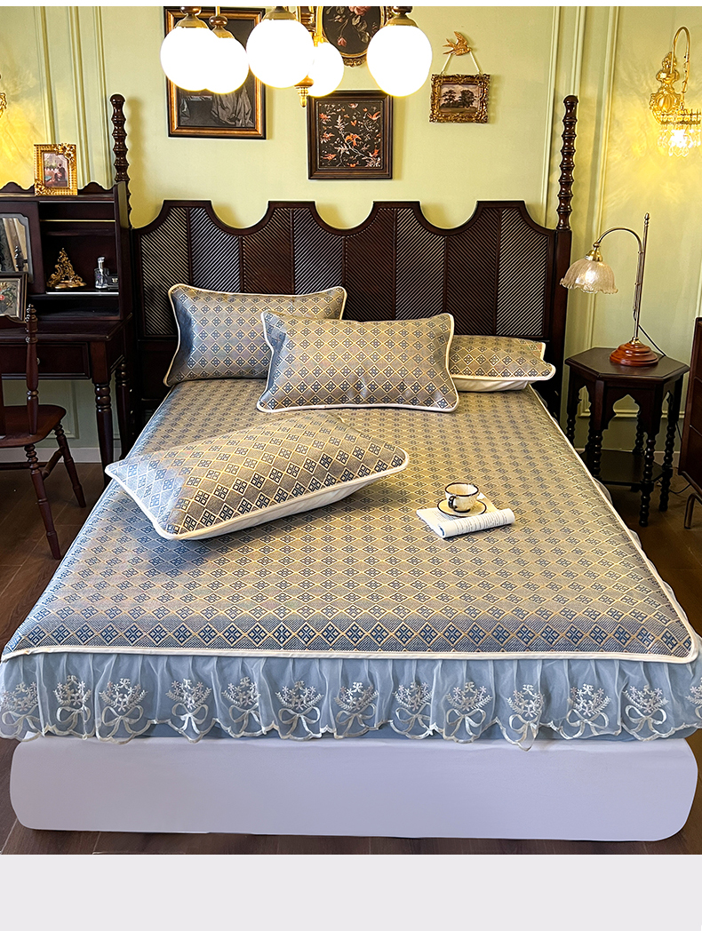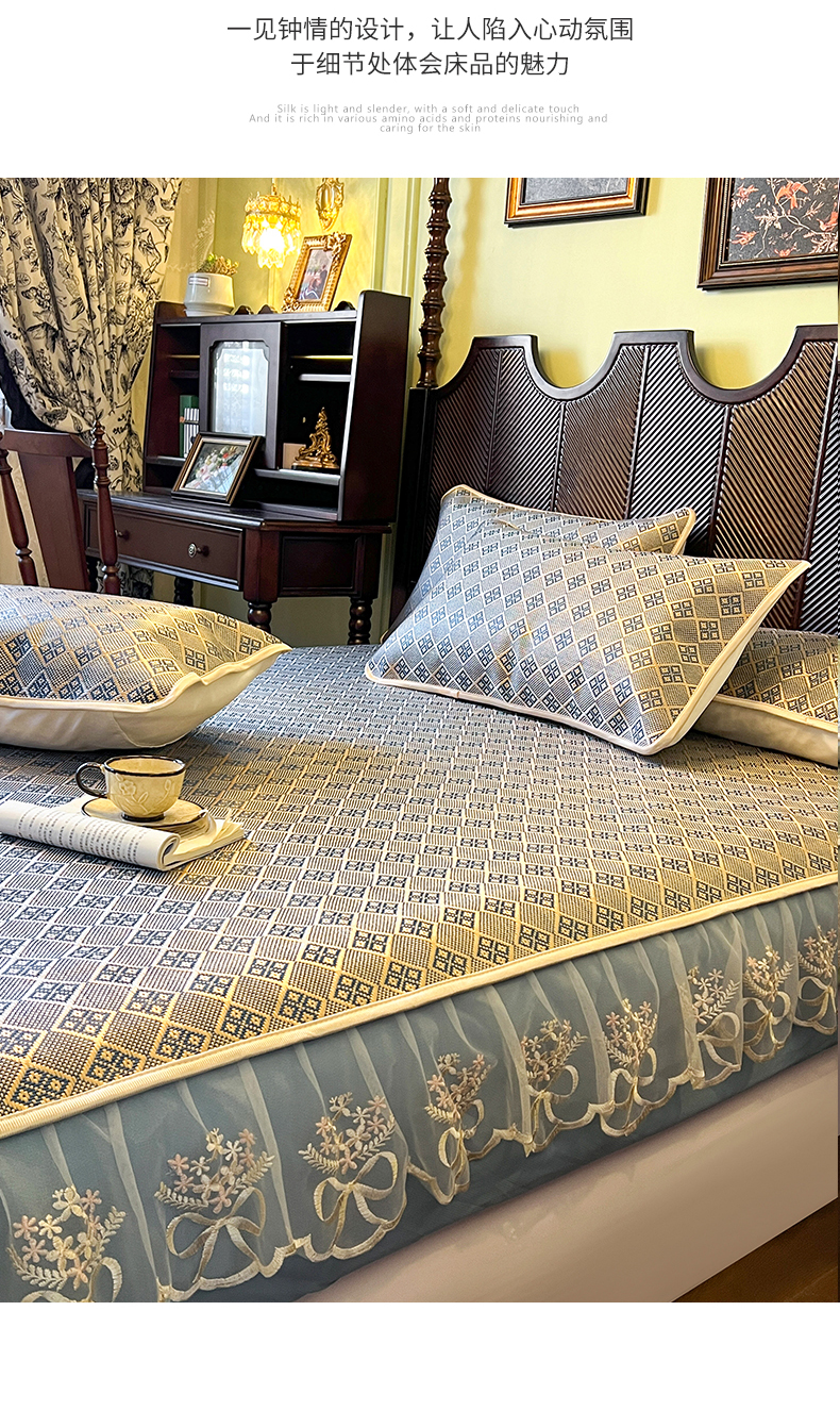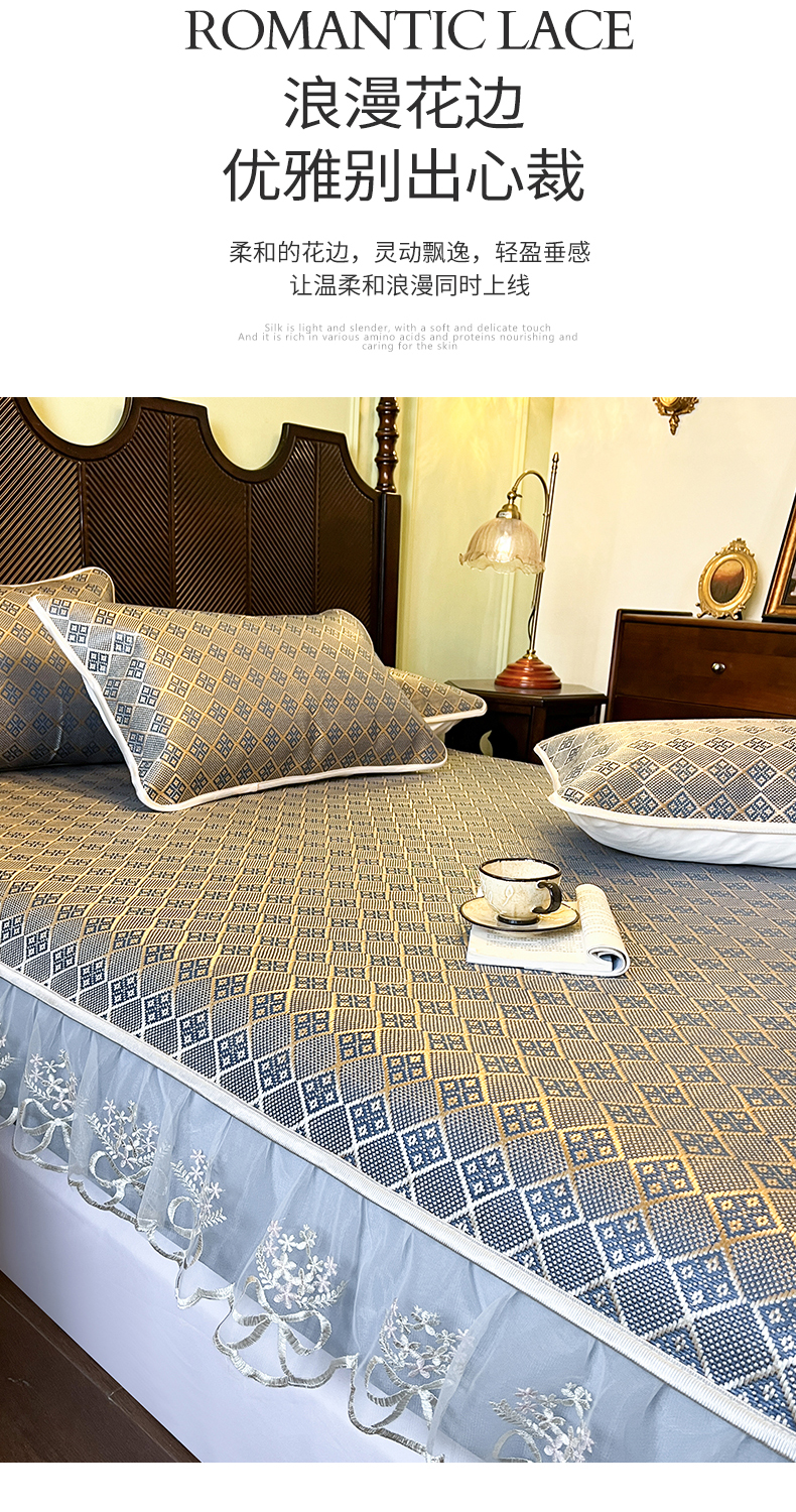 商品名称:网红馆(ck家纺) 2026新款床笠式花边冰藤席-夏之语 花青