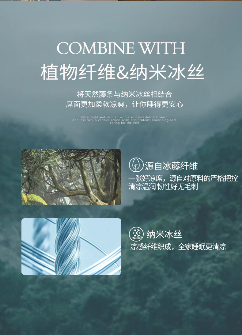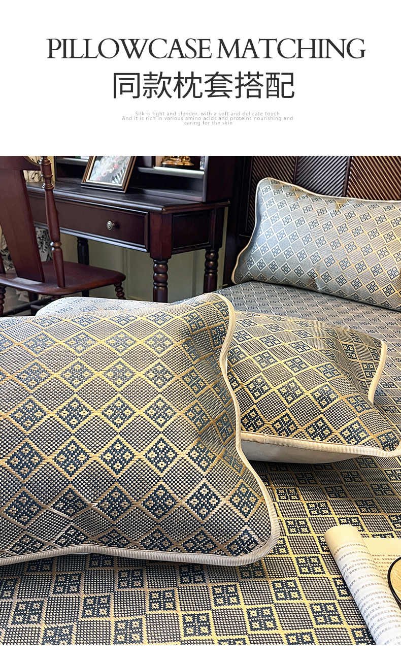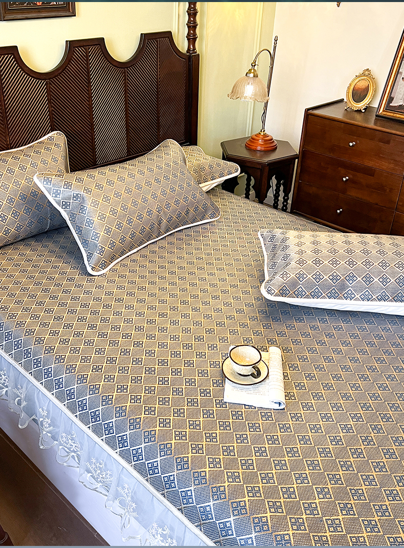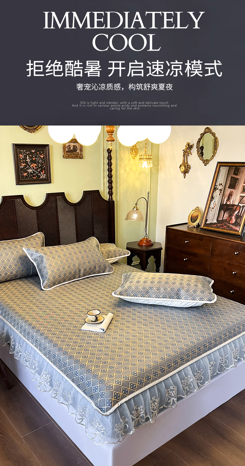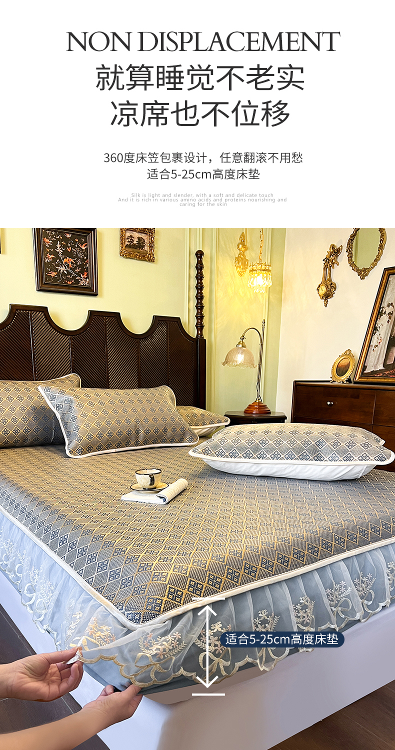 商品名称:网红馆(ck家纺) 2026新款床笠式花边冰藤席-夏之语 花青