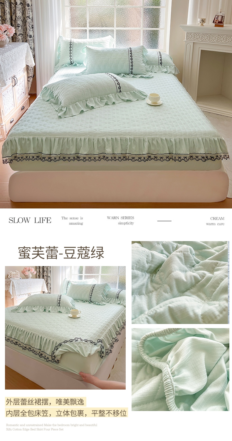 • 91家纺网 家纺一手货源 找家纺 (总)网红馆(ck家纺) 2026新款色织蕾丝边床裙款床笠,宝石蓝,黛绿色,浪漫紫,奶茶色,石青,香妃粉,烟熏灰