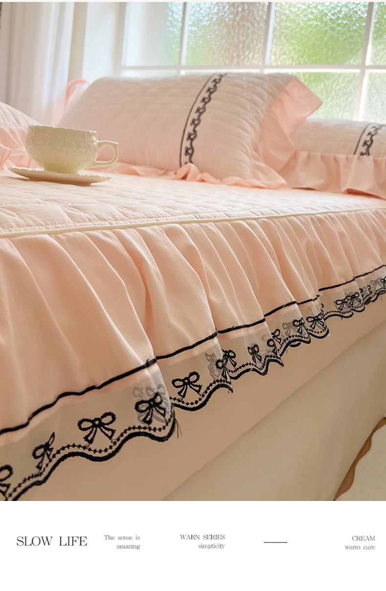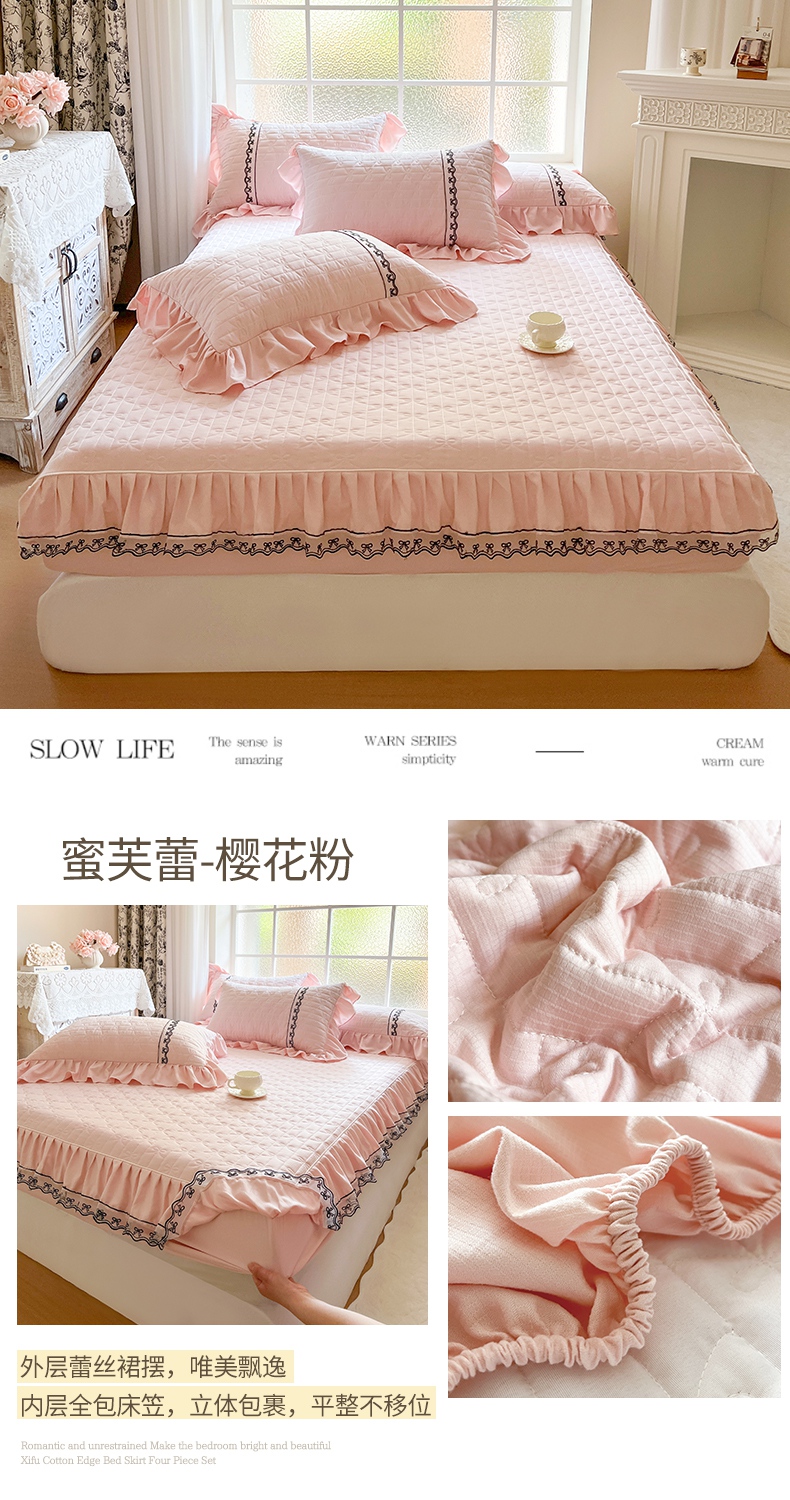 (总)网红馆(ck家纺) 2026新款全棉蕾丝花边床裙款床笠晨暮花间系列,绯红,粉色,麦绿,米色,浅紫,雾蓝