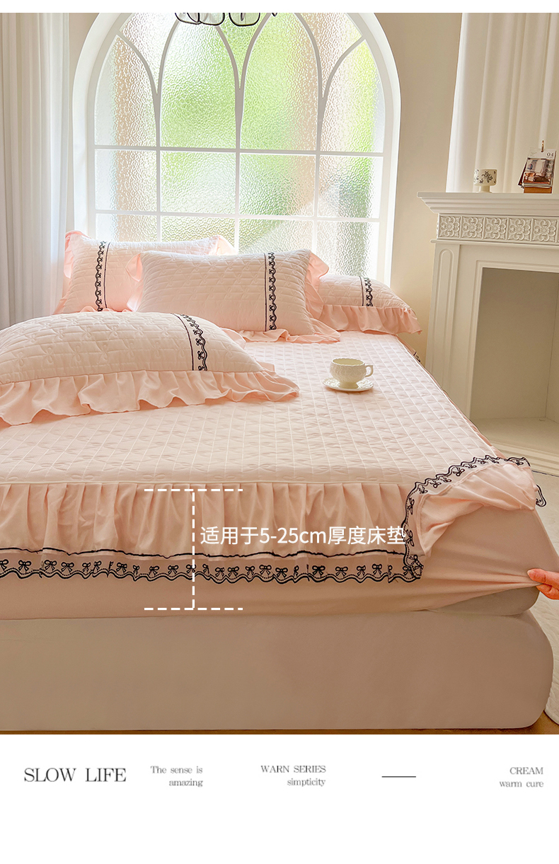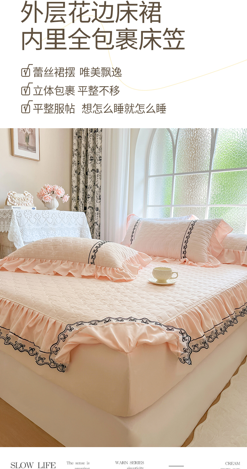 网红馆(ck家纺) 2026新款喜芙棉蕾丝夹棉蜜芙蕾床笠 凝脂玉