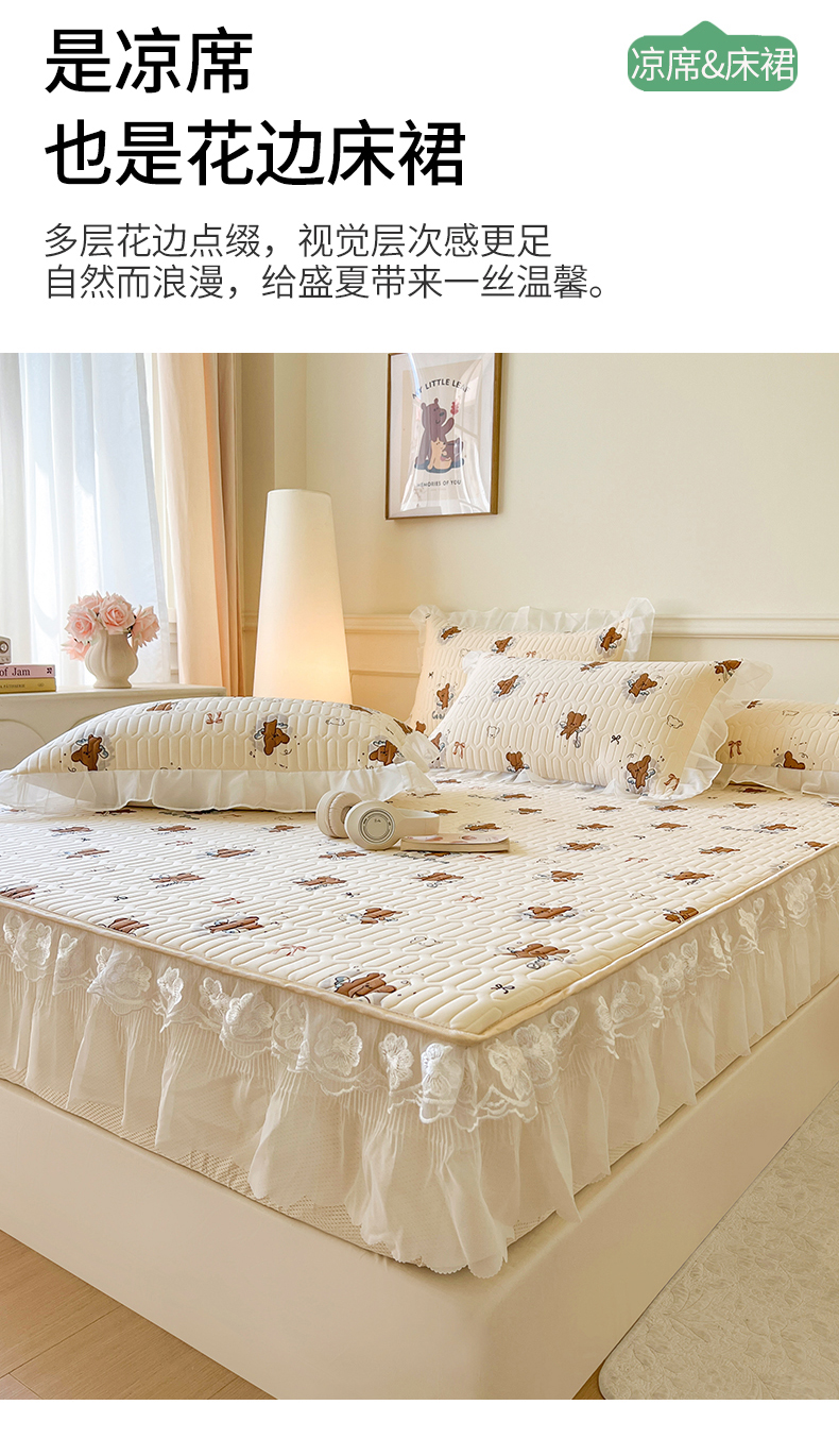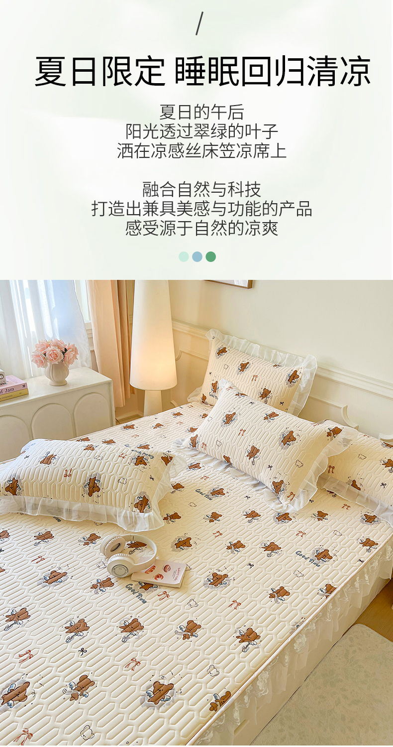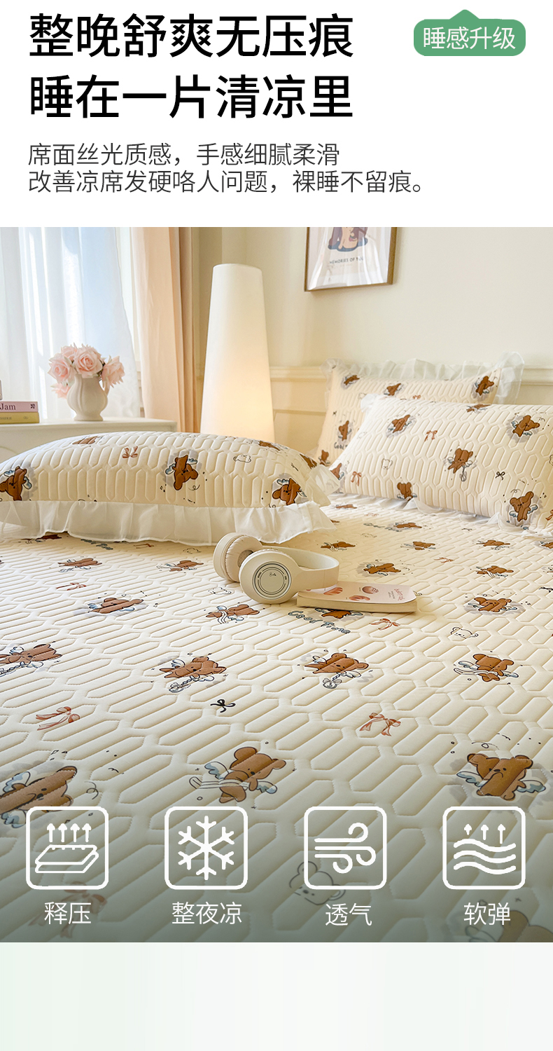 商品名称:网红馆(ck家纺) 2026新款凉感丝床笠式床裙款乳胶乳印花凉席 嘟嘟熊 茶