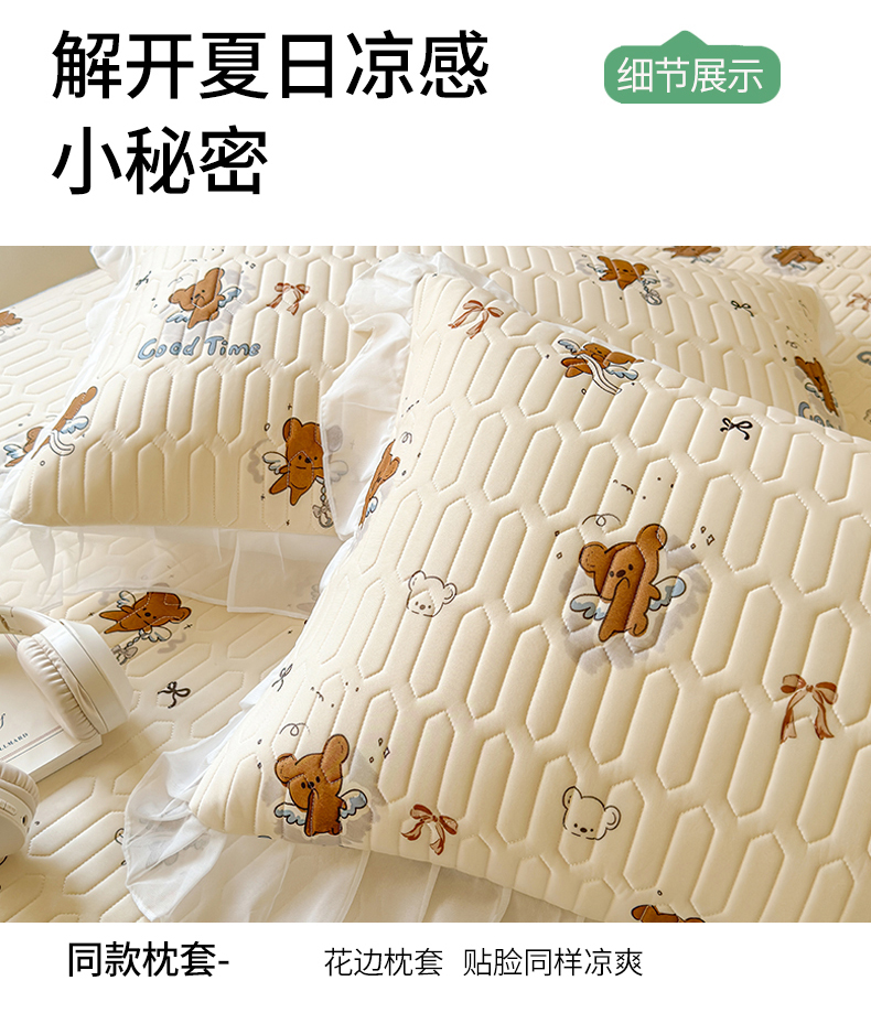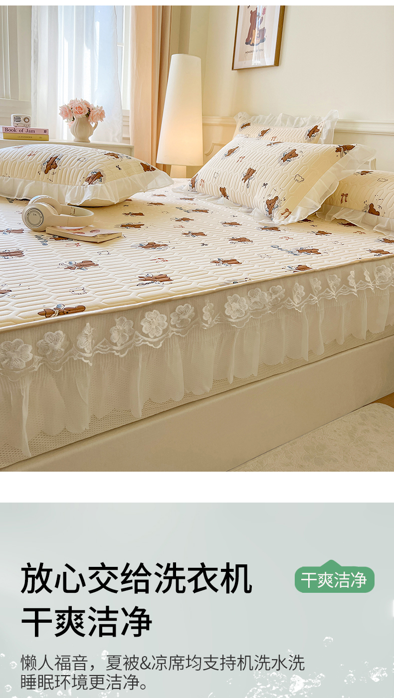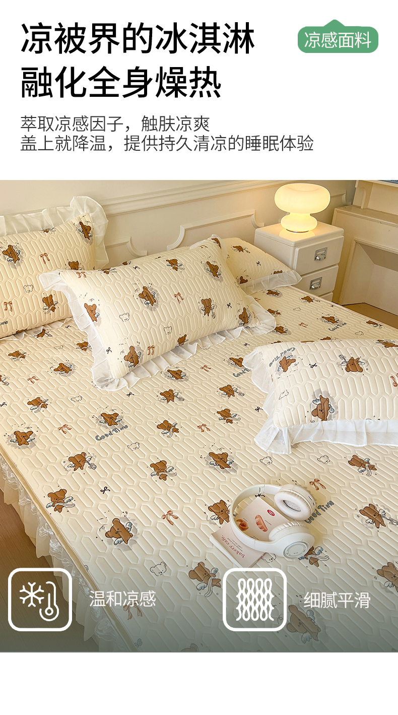 商品名称:网红馆(ck家纺) 2026新款凉感丝床笠式床裙款乳胶乳印花凉席 嘟嘟熊 茶