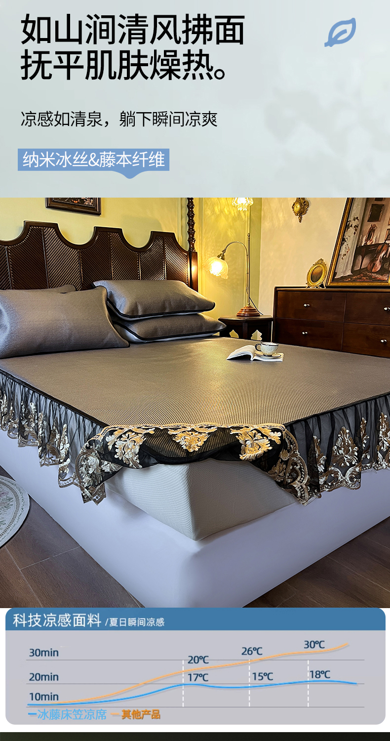 网红馆(ck家纺) 2026新款床笠款冰藤席夏日记忆系列 灰咖