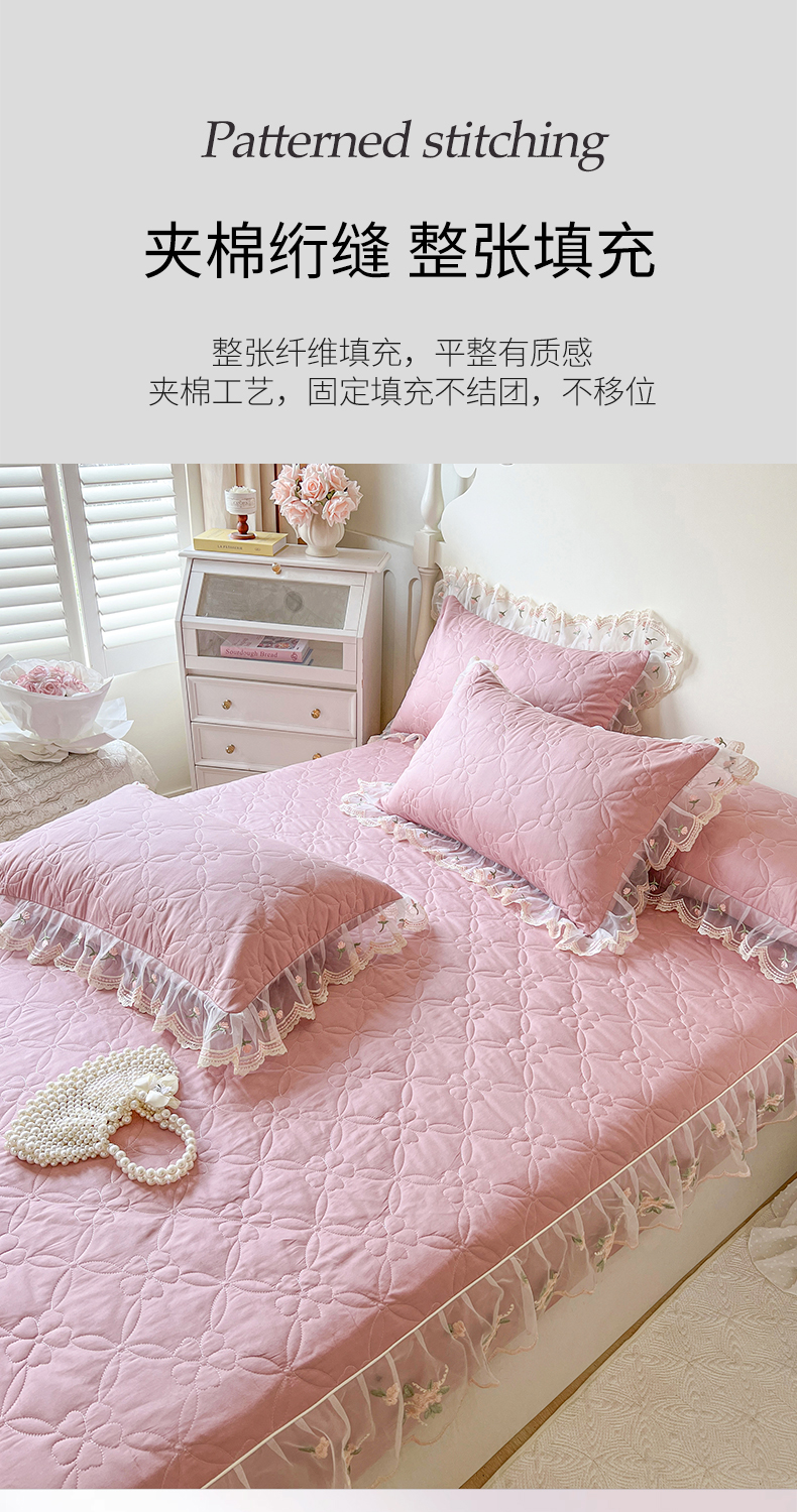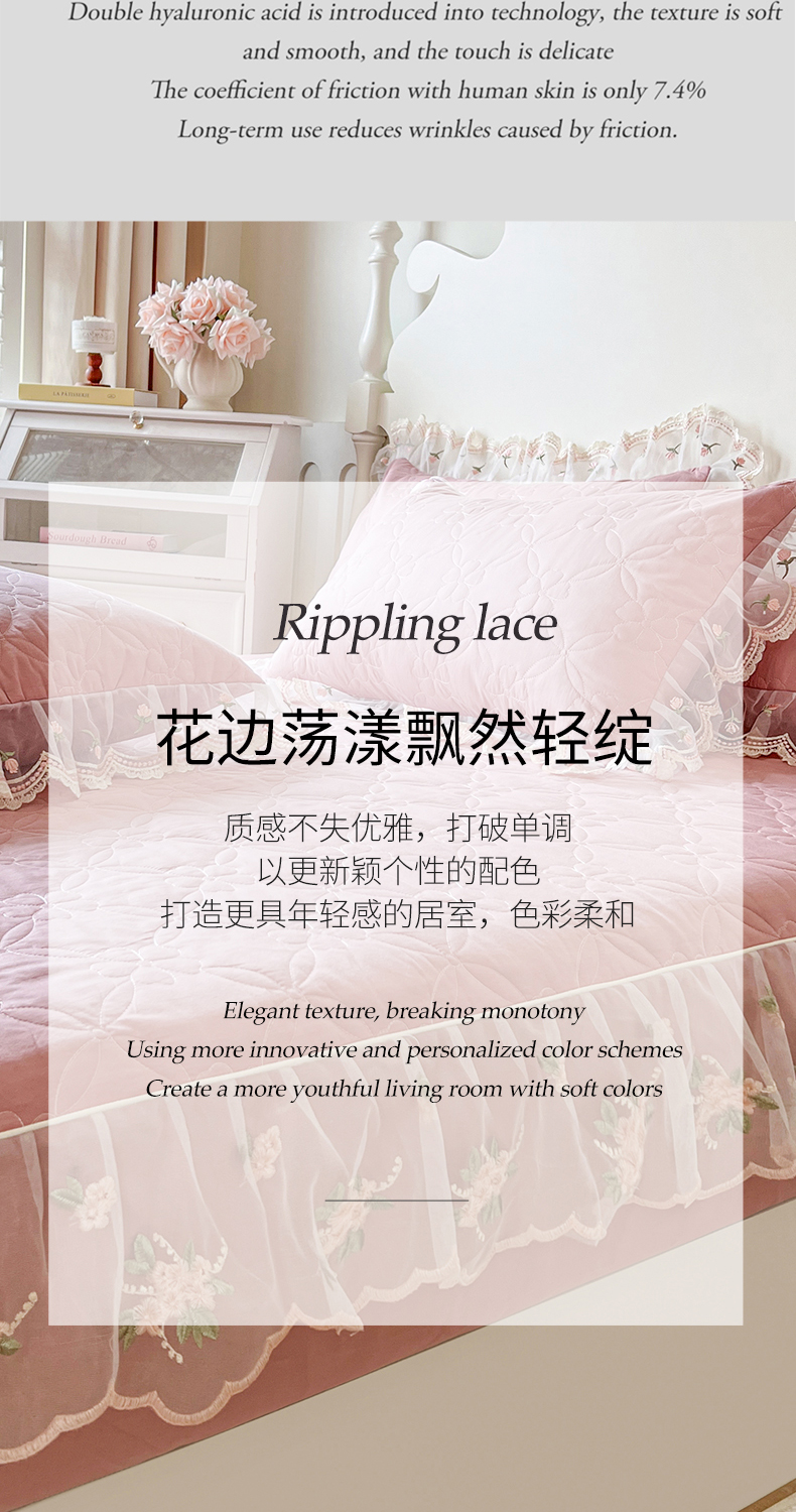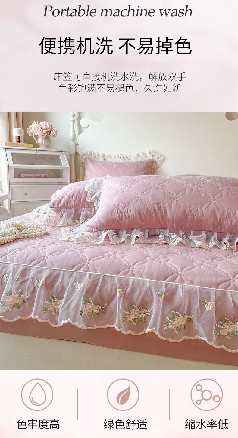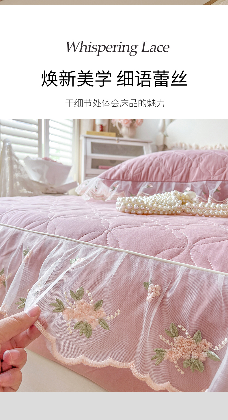 (总)网红馆(ck家纺) 2026新款全棉蕾丝花边床裙款床笠晨暮花间系列,绯红,粉色,麦绿,米色,浅紫,雾蓝