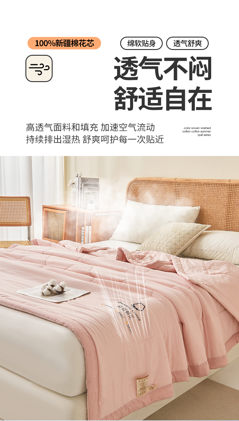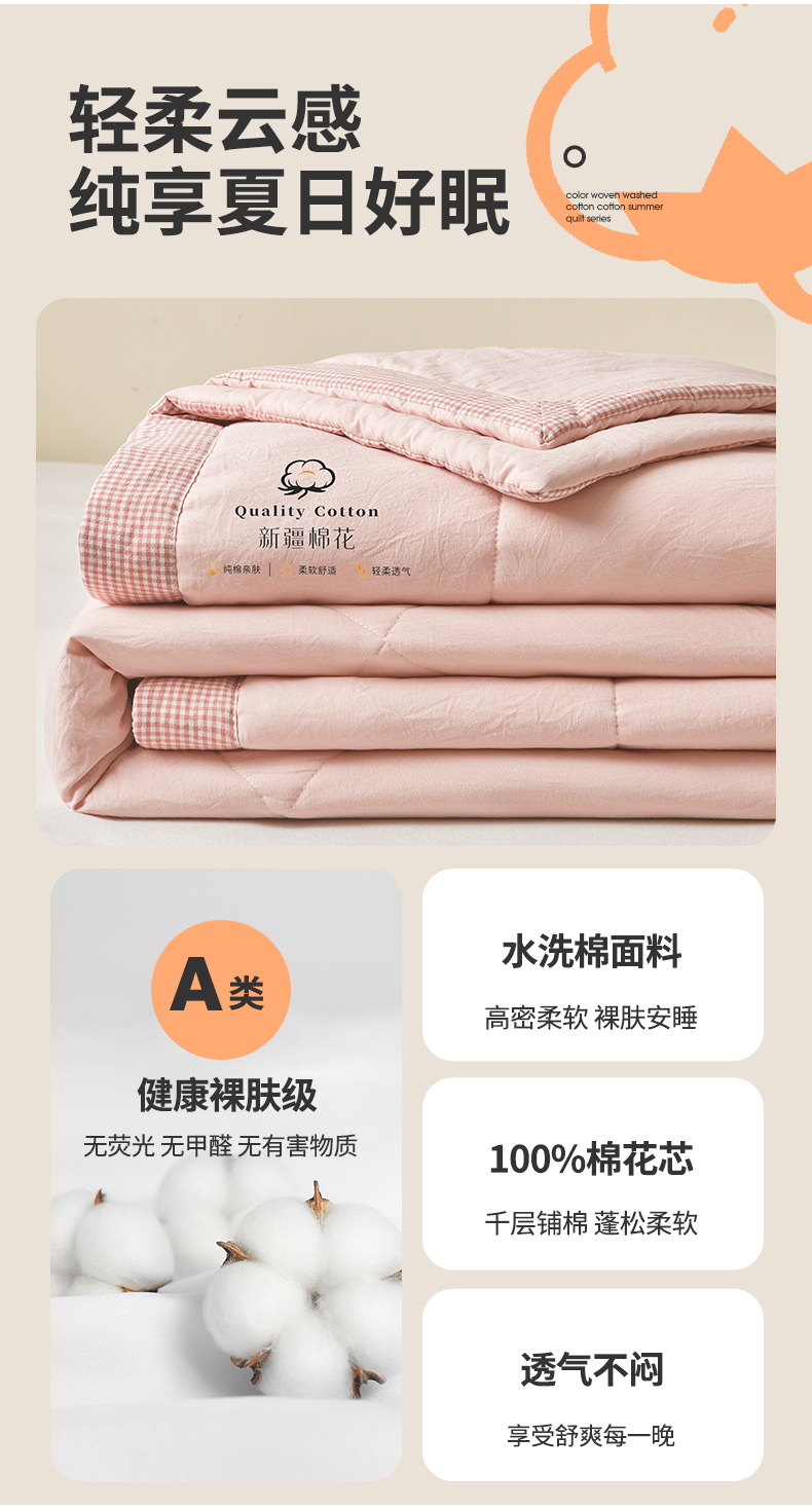 商品名称:魅图家纺 2026新款新疆棉花夏被被子被芯新疆棉 烟粉【提供买家秀】